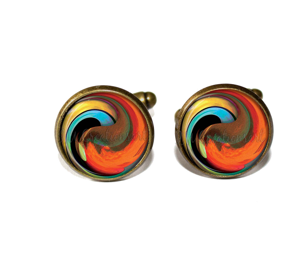 If you don't want to buy dad, grandfather, uncle, brother another sweater or tie, then these unique designed round glass and metal cuff links would make a perfect gift. They are a lovely, affordable, unique gift idea for any occasion. Perfect for personal gifts, party favors, wedding gifts, stocking stuffers, fundraisers, teacher gifts, holidays presents, or just buy for yourself!