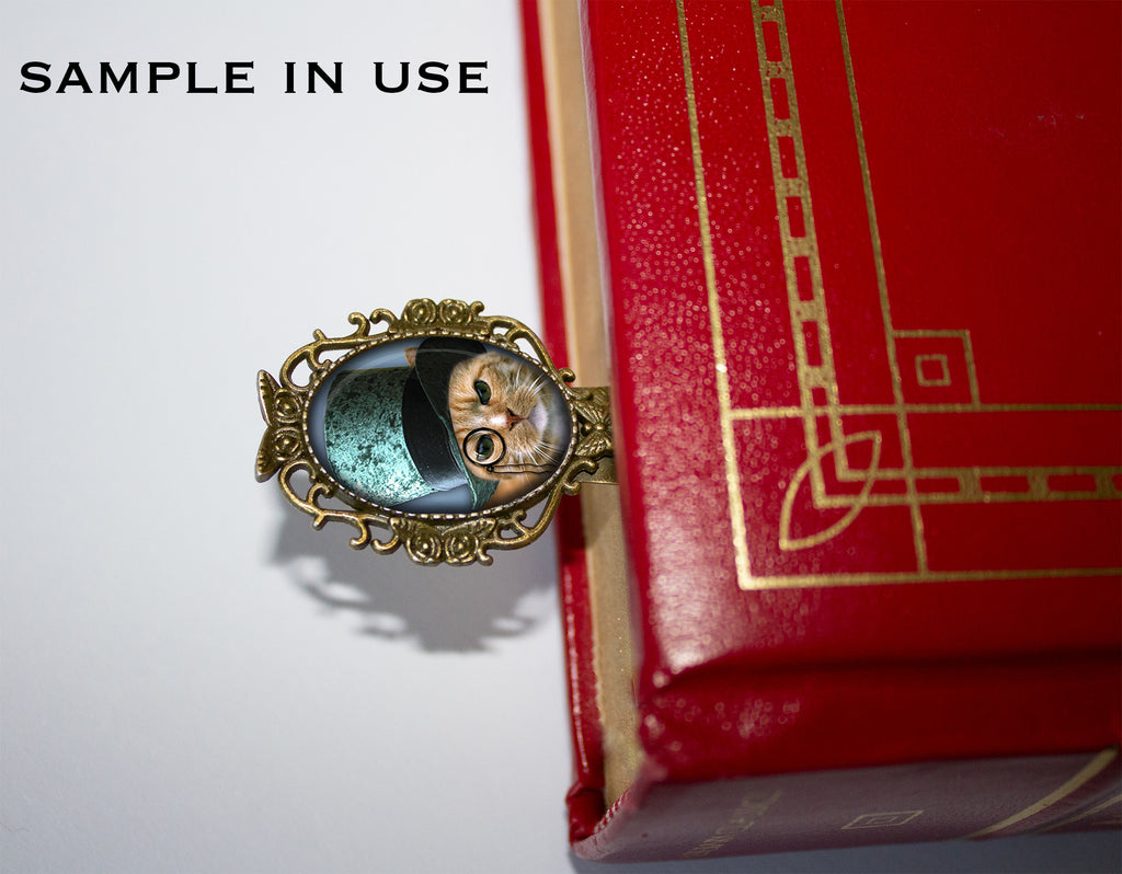 Glass cabochon alloy metal bookmarks make a lovely, affordable, and unique gift idea for any occasion. The oval glass pops up printed image beneath it giving it a 3D appearance. Well crafted to ensure a high quality product.