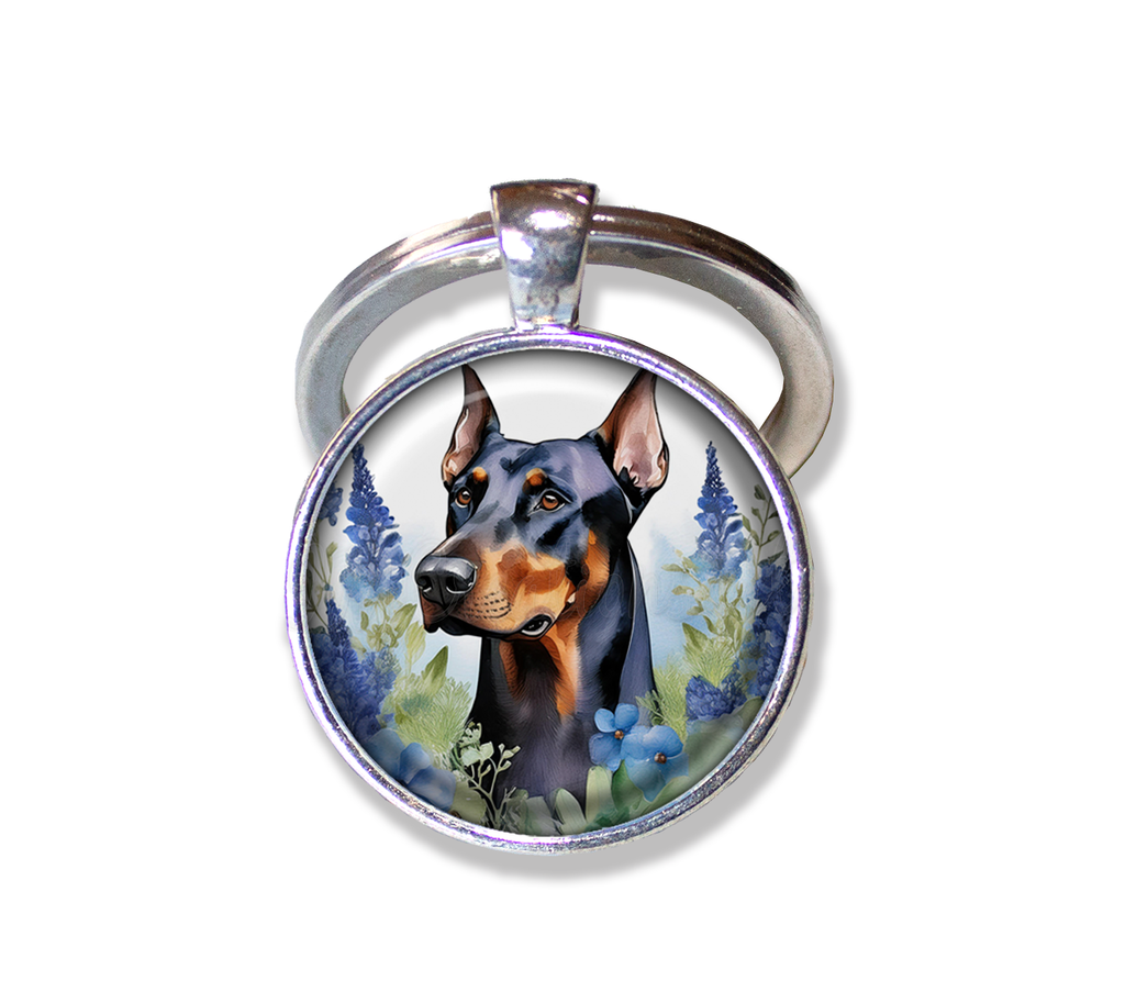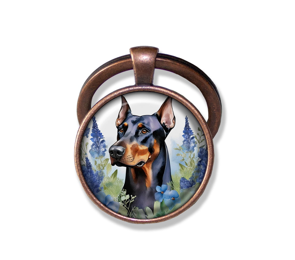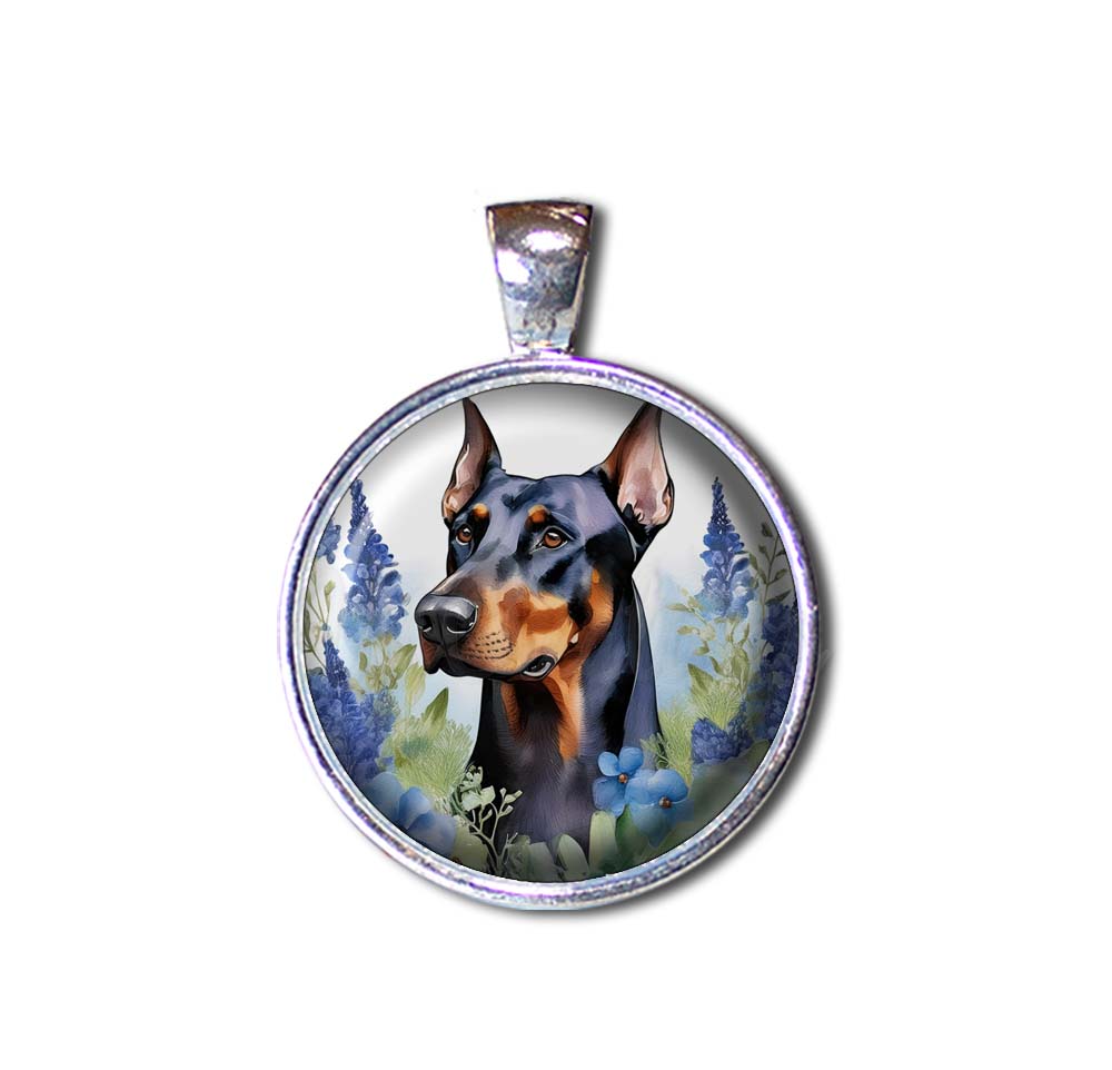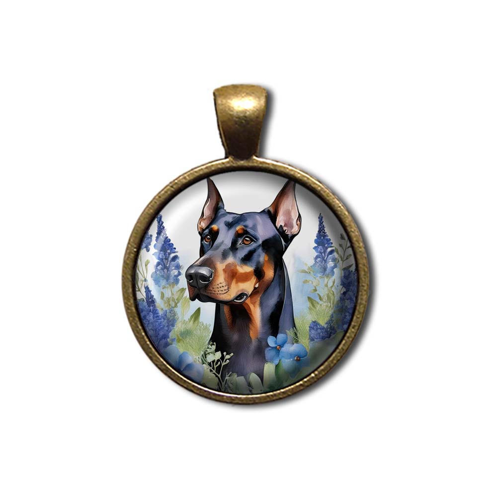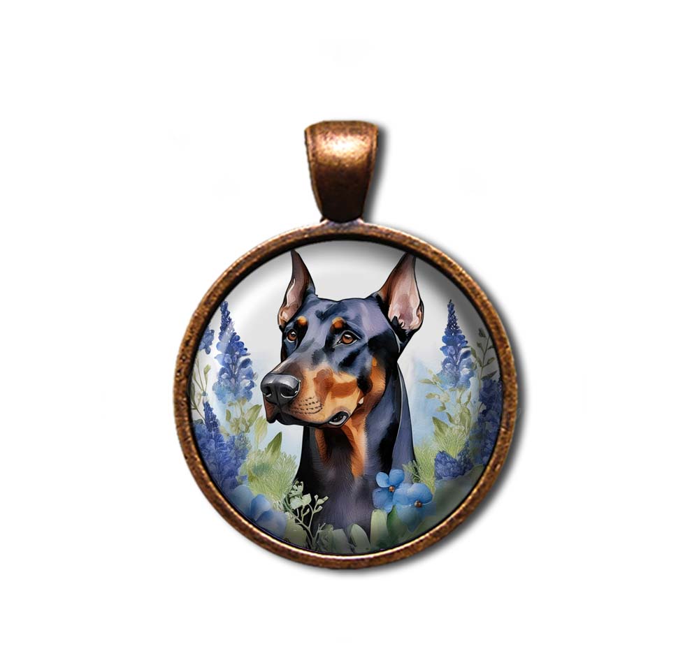 Doberman Pinscher Shabby Chic Blue Bonnet