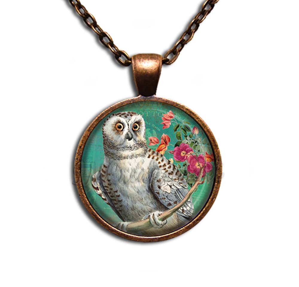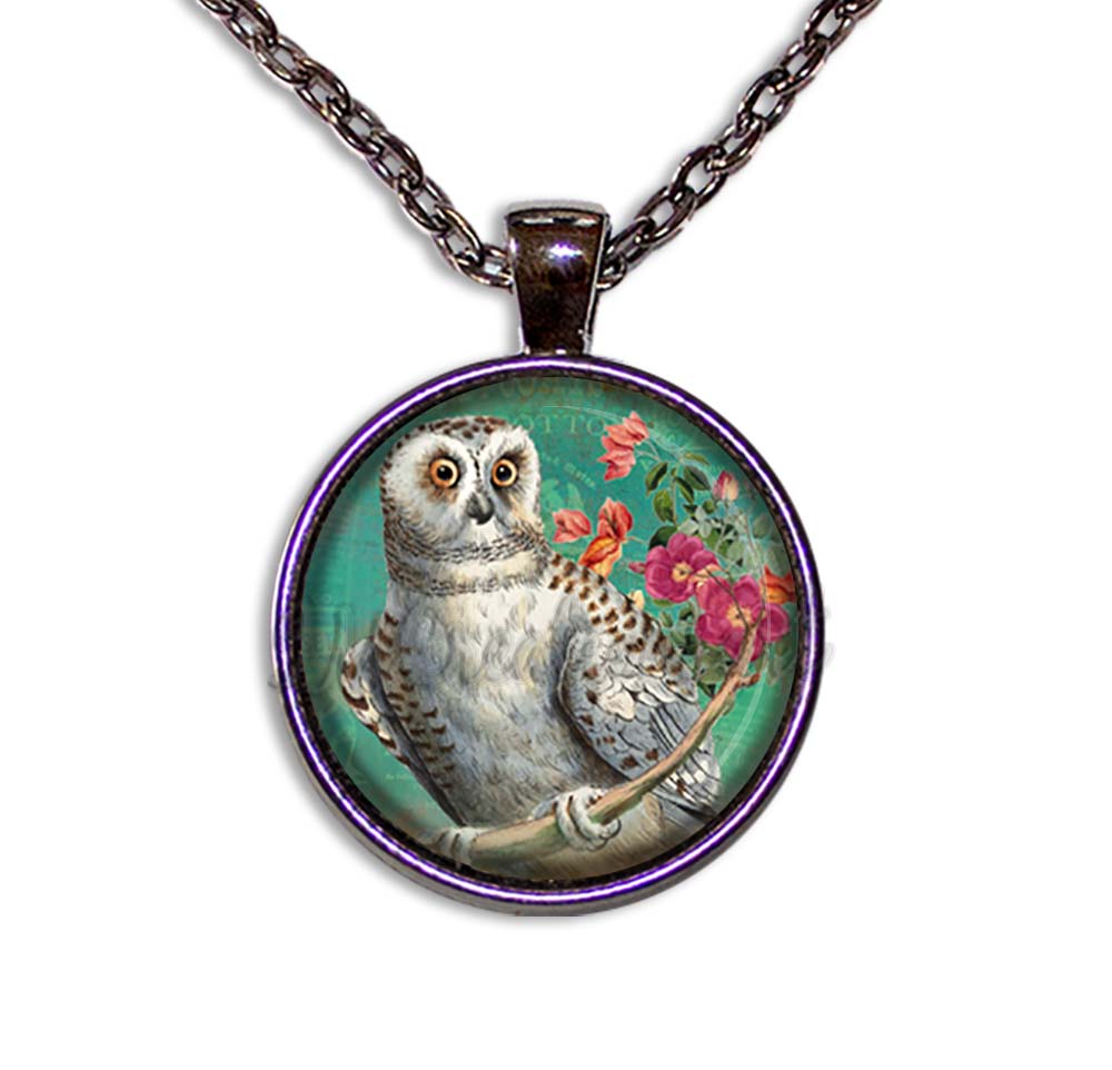 Discover our exquisite pendant necklace featuring a charming perched barn owl in lovely greens. Crafted with care, each glass pendant is available in four elegant metal finishes: Antique Bronze, Antique Copper, Bright Silver, and Gunmetal Black. Perfect as a thoughtful and affordable gift for any occasion, these meticulously crafted necklaces combine beauty and quality in every piece.