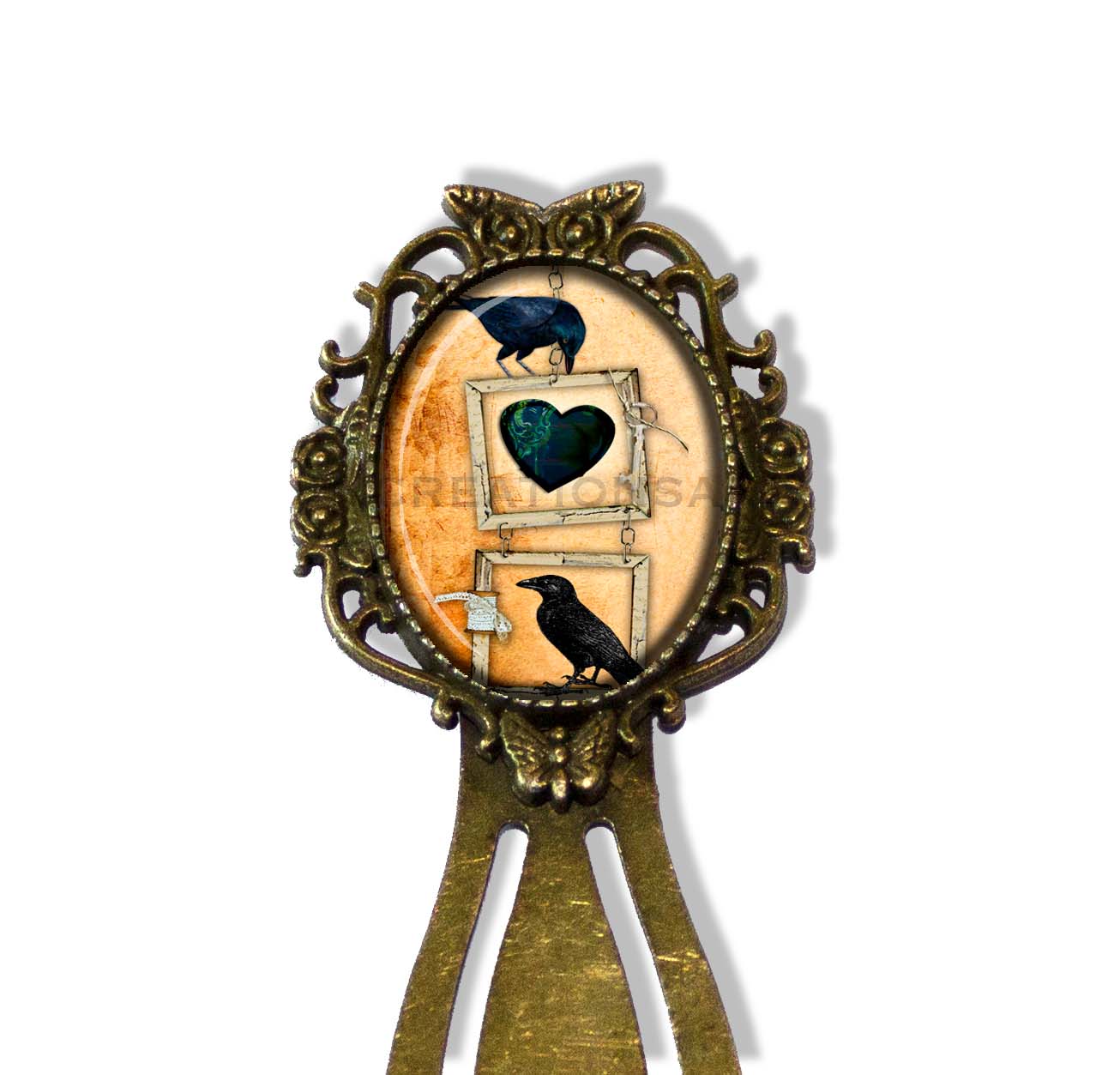 Oval Glass Antique Brass Metal Bookmark