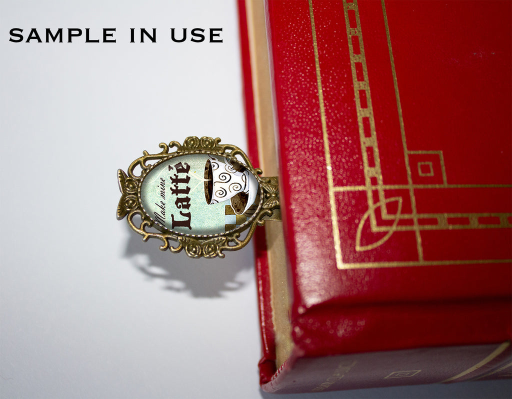 Glass cabochon alloy metal bookmarks make a lovely, affordable, and unique gift idea for any occasion. The oval glass pops up printed image beneath it giving it a 3D appearance. Well crafted to ensure a high quality product.