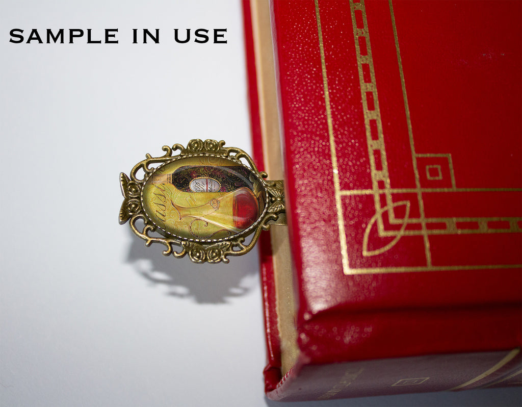 Glass cabochon alloy metal bookmarks make lovely, affordable, and unique gift idea for any occasion. The oval glass pops up printed image beneath it giving it a 3D appearance. Well crafted to ensure a high quality product.