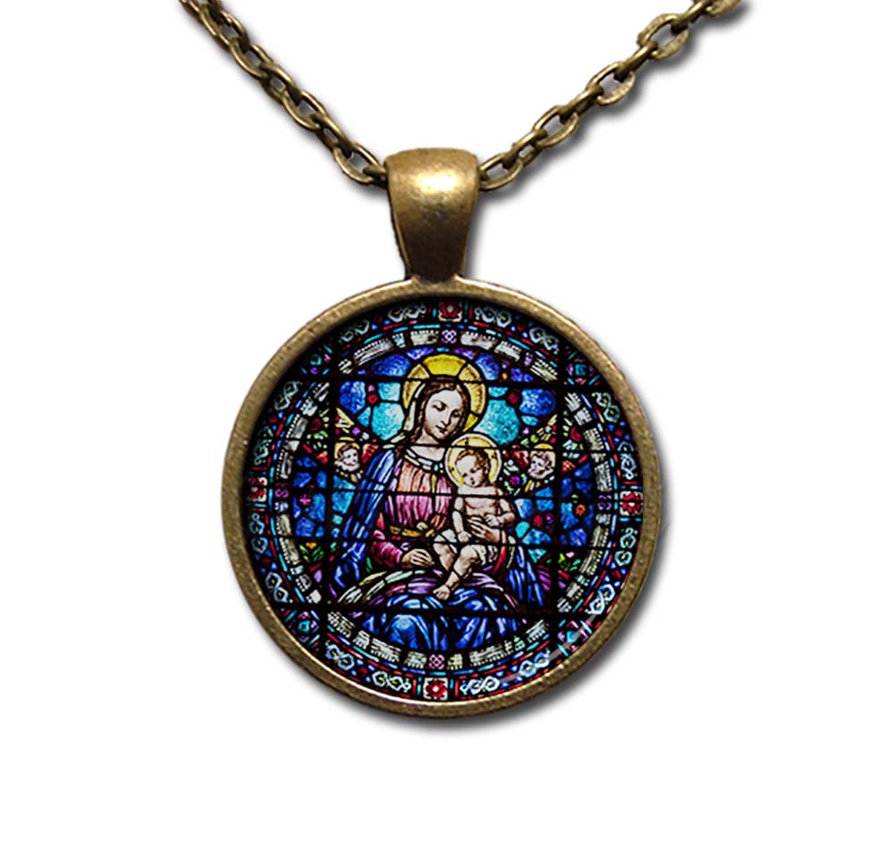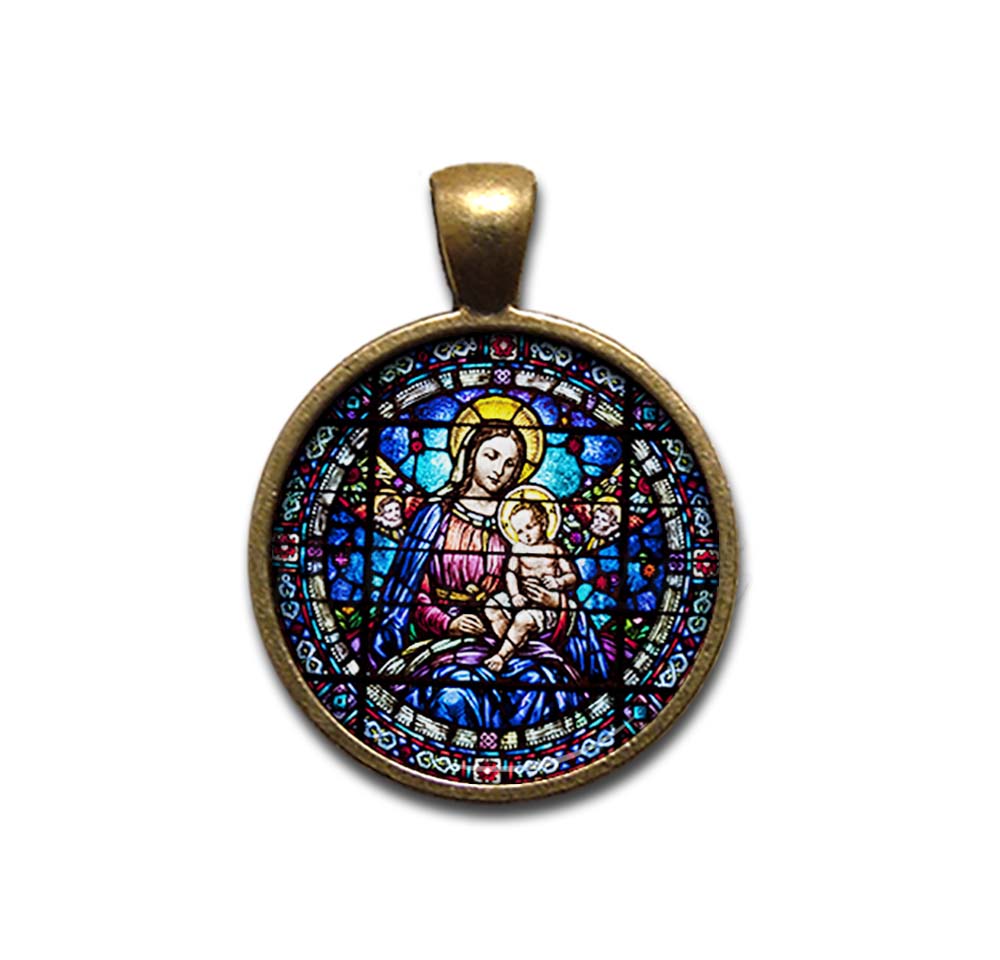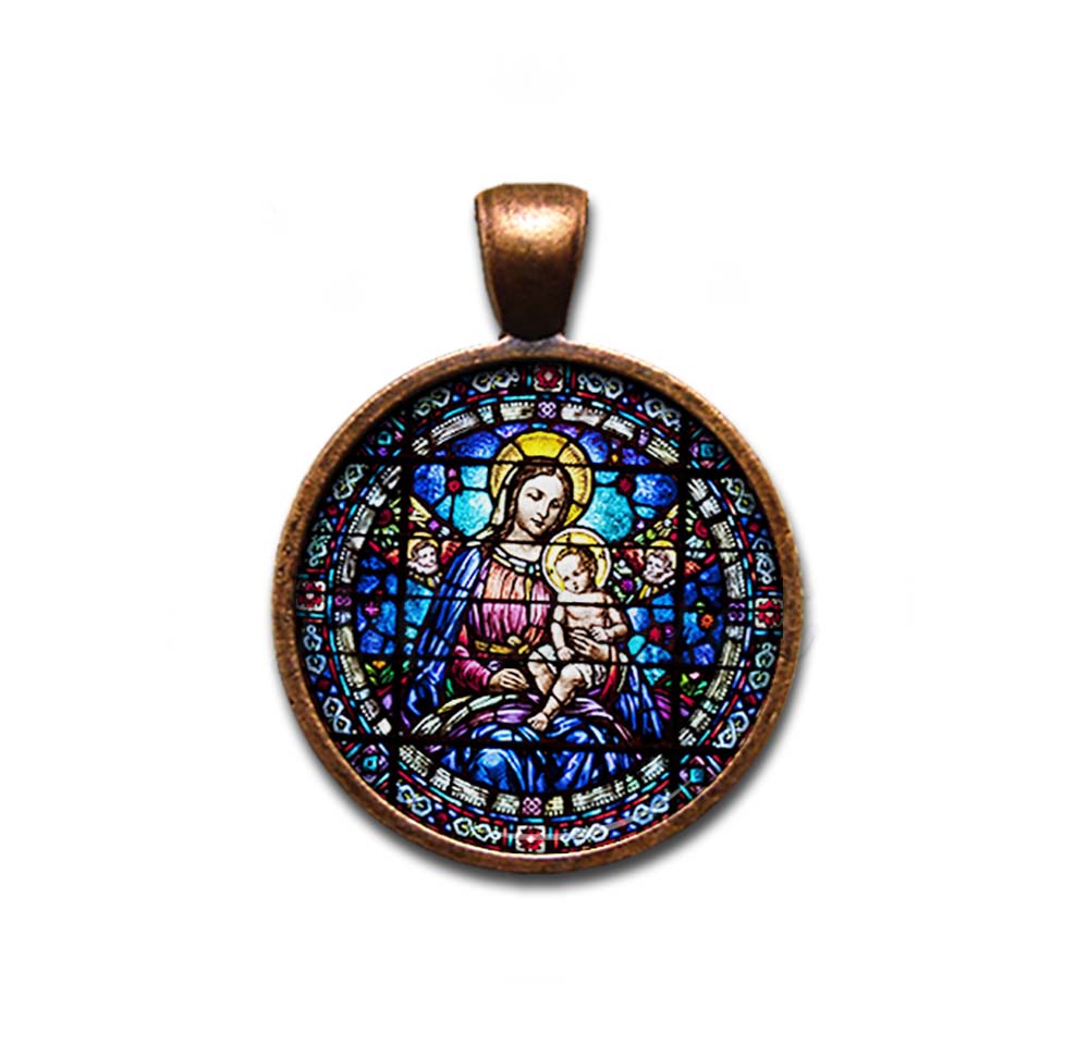 Virgin Mary and Baby Jesus Faux Stained Glass