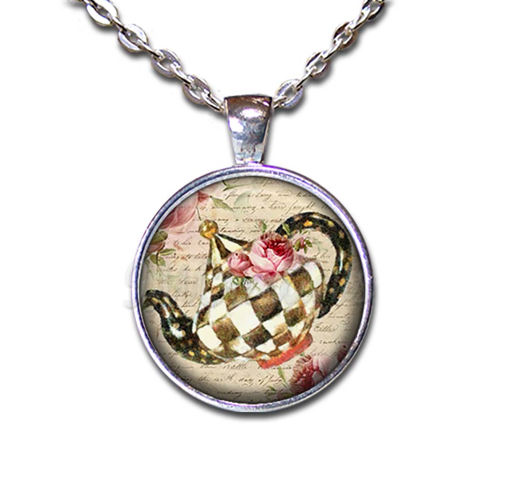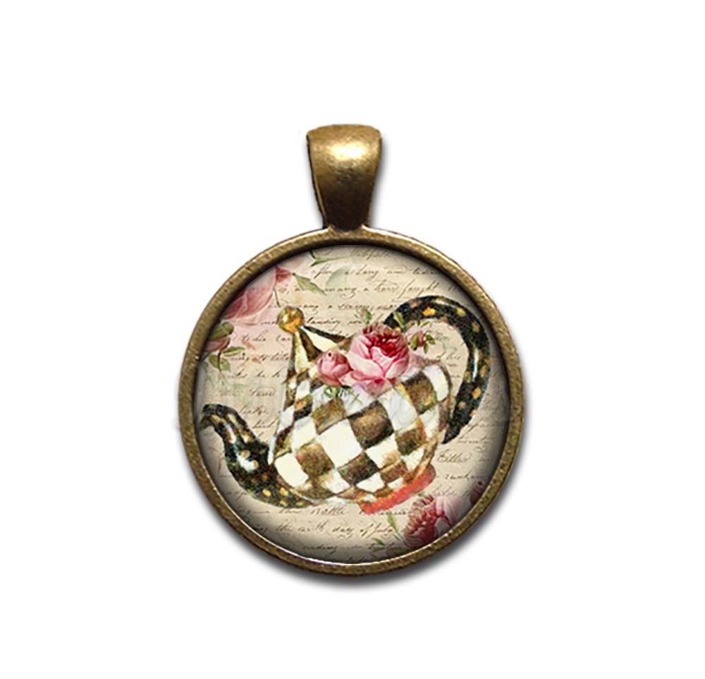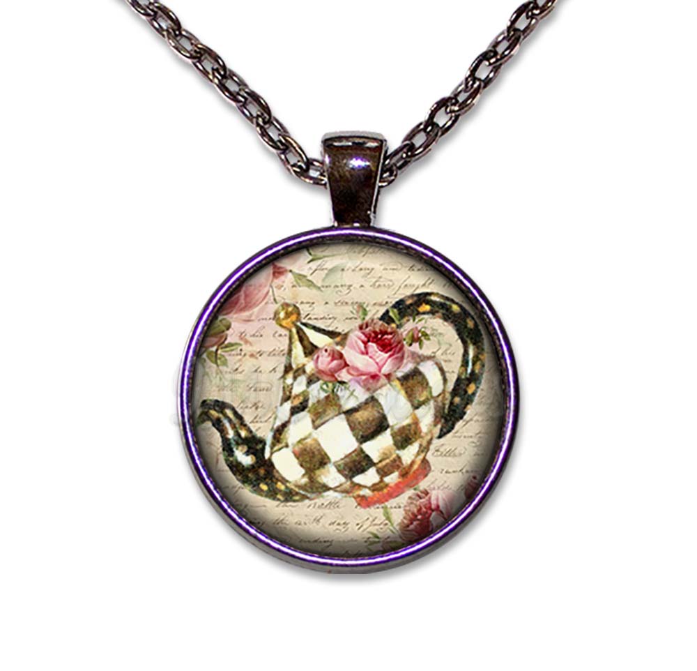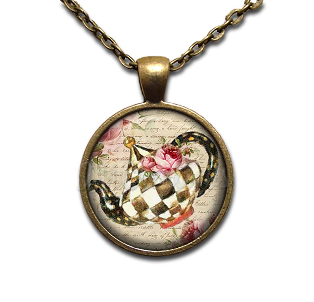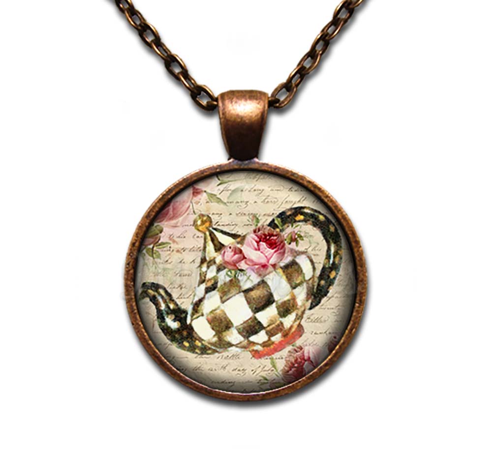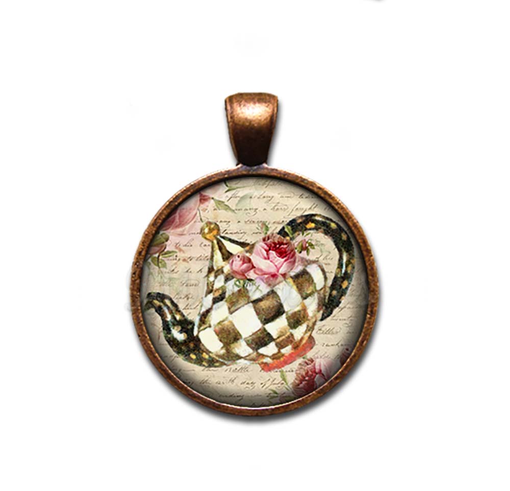 Explore our charming tea kettle pendant necklace inspired by Alice in Wonderland, perfect for tea and coffee enthusiasts and book lovers alike. Ideal for back-to-school gifting, each handcrafted glass pendant is available in four sophisticated metal finishes: Antique Bronze, Antique Copper, Bright Silver, and Gunmetal Black. A thoughtful and affordable gift option, these beautifully crafted necklaces seamlessly blend elegance and quality, making them a delightful addition to any jewelry collection.