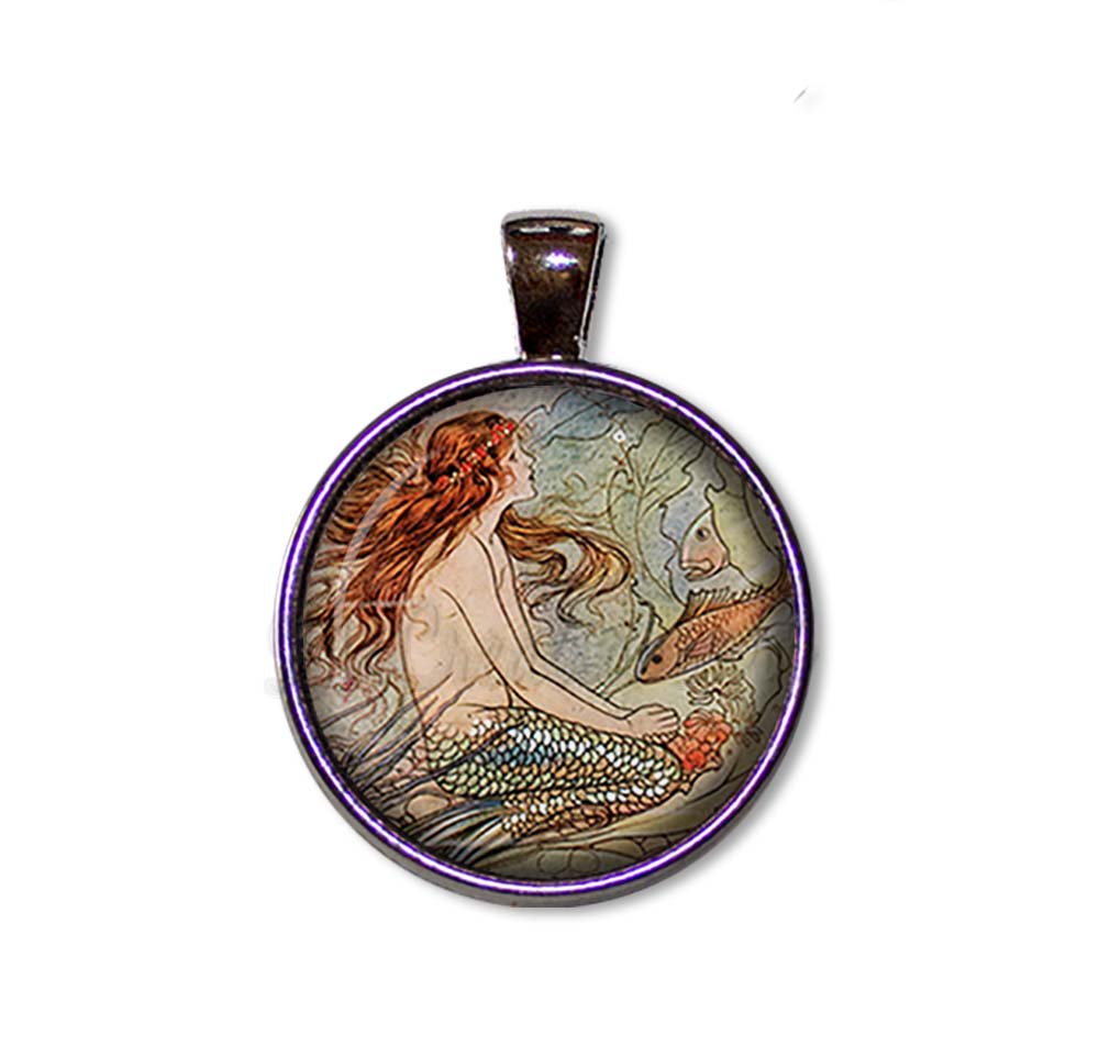 Discover this enchanting glass pendant necklace showcasing mystical vintage style mermaid, making it an ideal gift for friends, book lovers, or for back-to-school wear. Available in four elegant metal finishes—Bright Silver, Gunmetal Black, Antique Bronze, and Antique Copper—each carefully crafted to ensure durability and timeless beauty. This charming piece is perfect for any occasion, offering a unique and thoughtful accessory that combines artistry and quality.