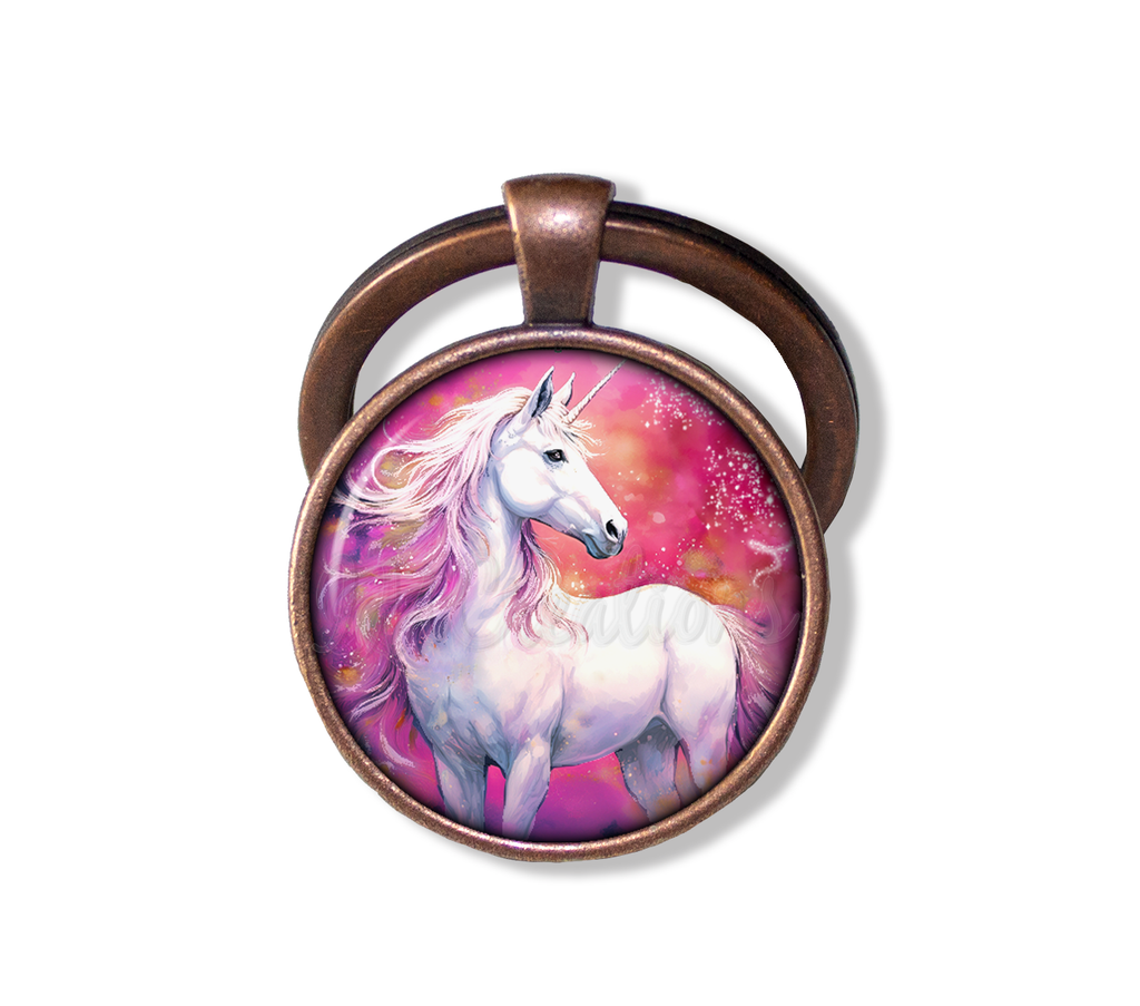 Discover this charming glass pendant necklace featuring a whimsical white unicorn design against a fuchsia pink background. Adorned by many, this magical creature adds a touch of enchantment to any outfit. The pendant is available in four elegant metal finishes: Bright Silver, Gunmetal Black, Antique Bronze, and Antique Copper. Perfect as a thoughtful and unique gift for any occasion, each pendant is carefully crafted to ensure high quality and lasting beauty.