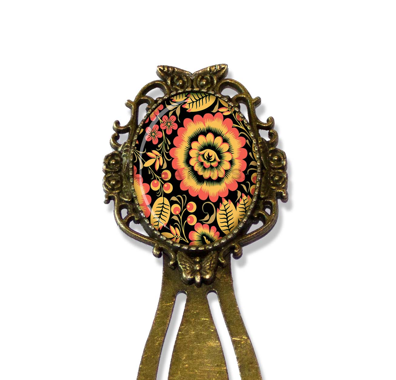 Oval Glass Antique Brass Metal Bookmark