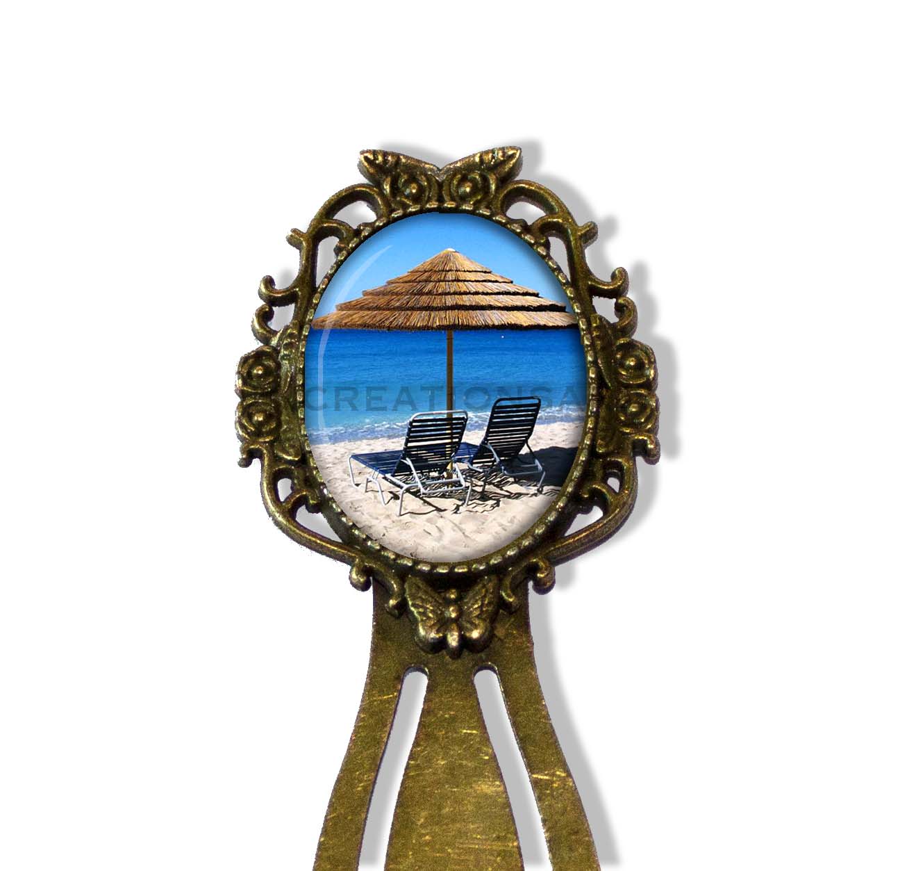 Oval Glass Antique Brass Metal Bookmark
