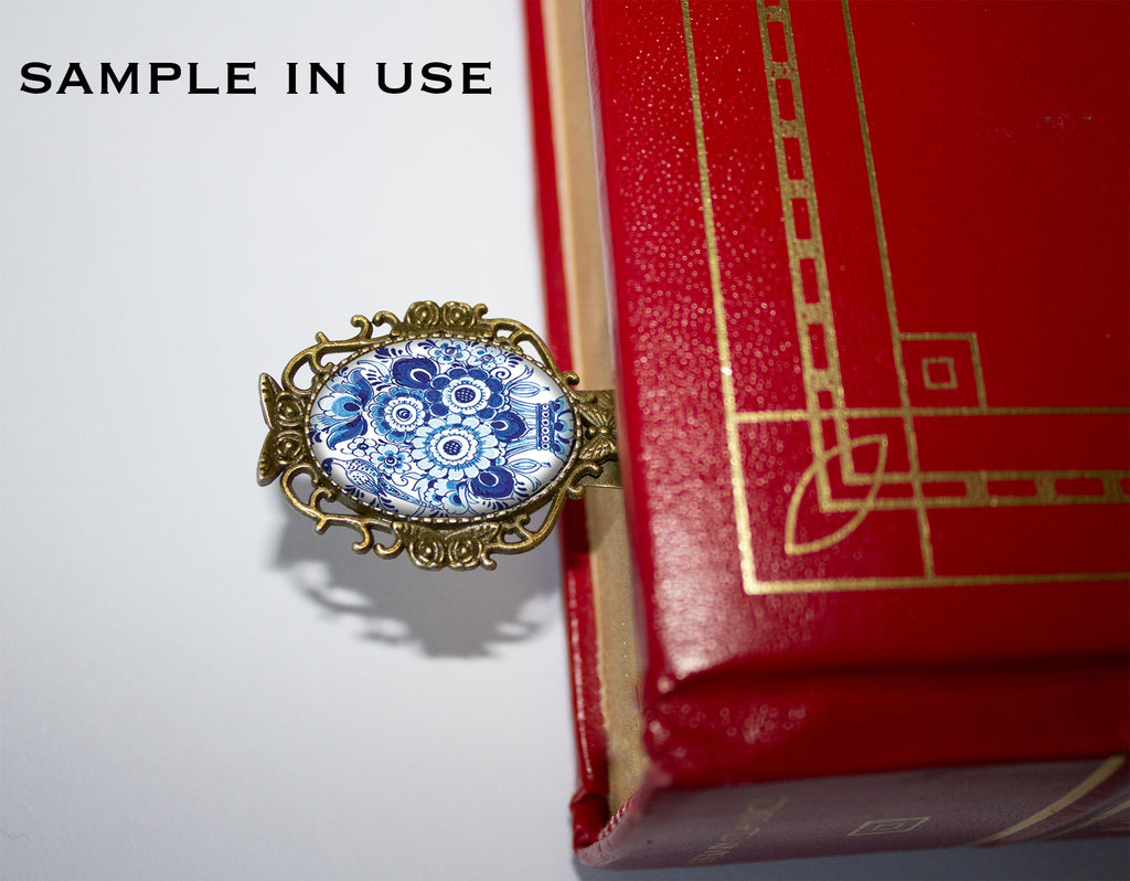 Glass cabochon alloy metal bookmarks make a lovely, affordable, and unique gift idea for any occasion. The oval glass pops up printed image beneath it giving it a 3D appearance. Well crafted to ensure a high quality product.