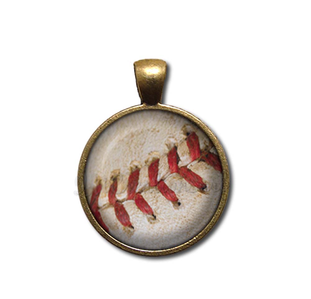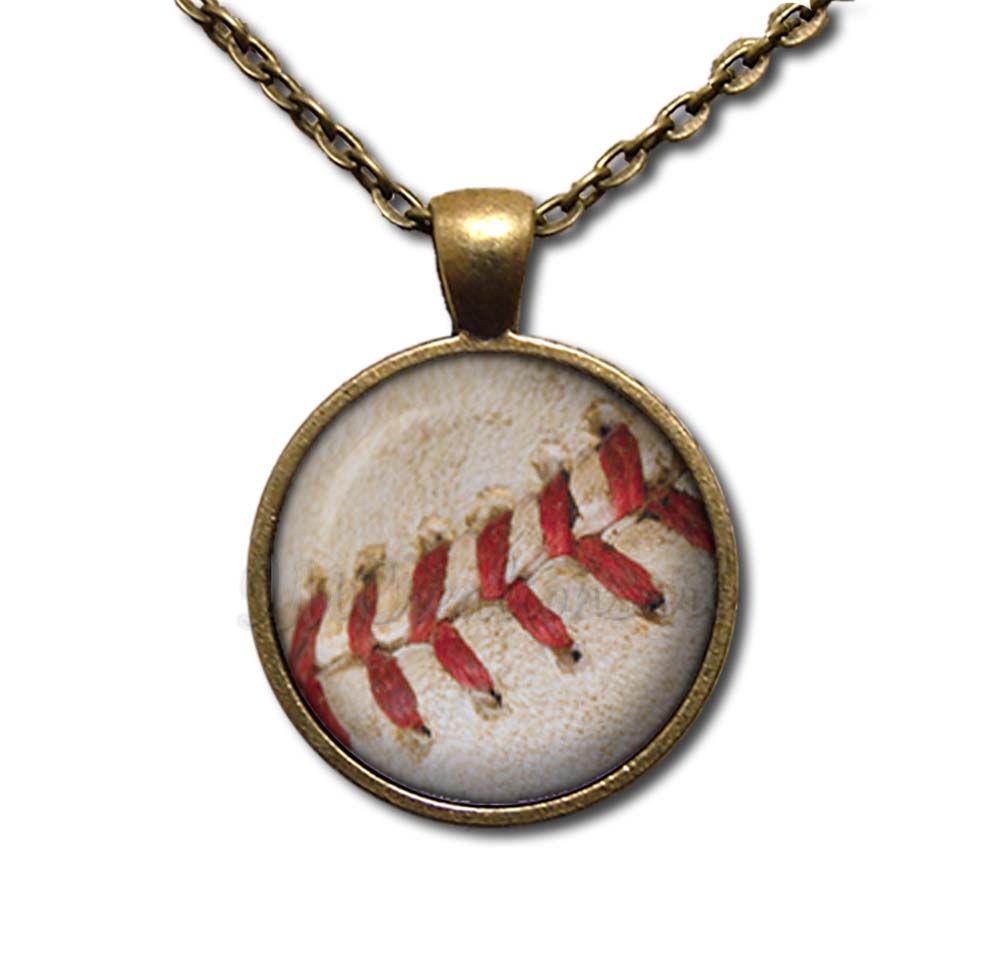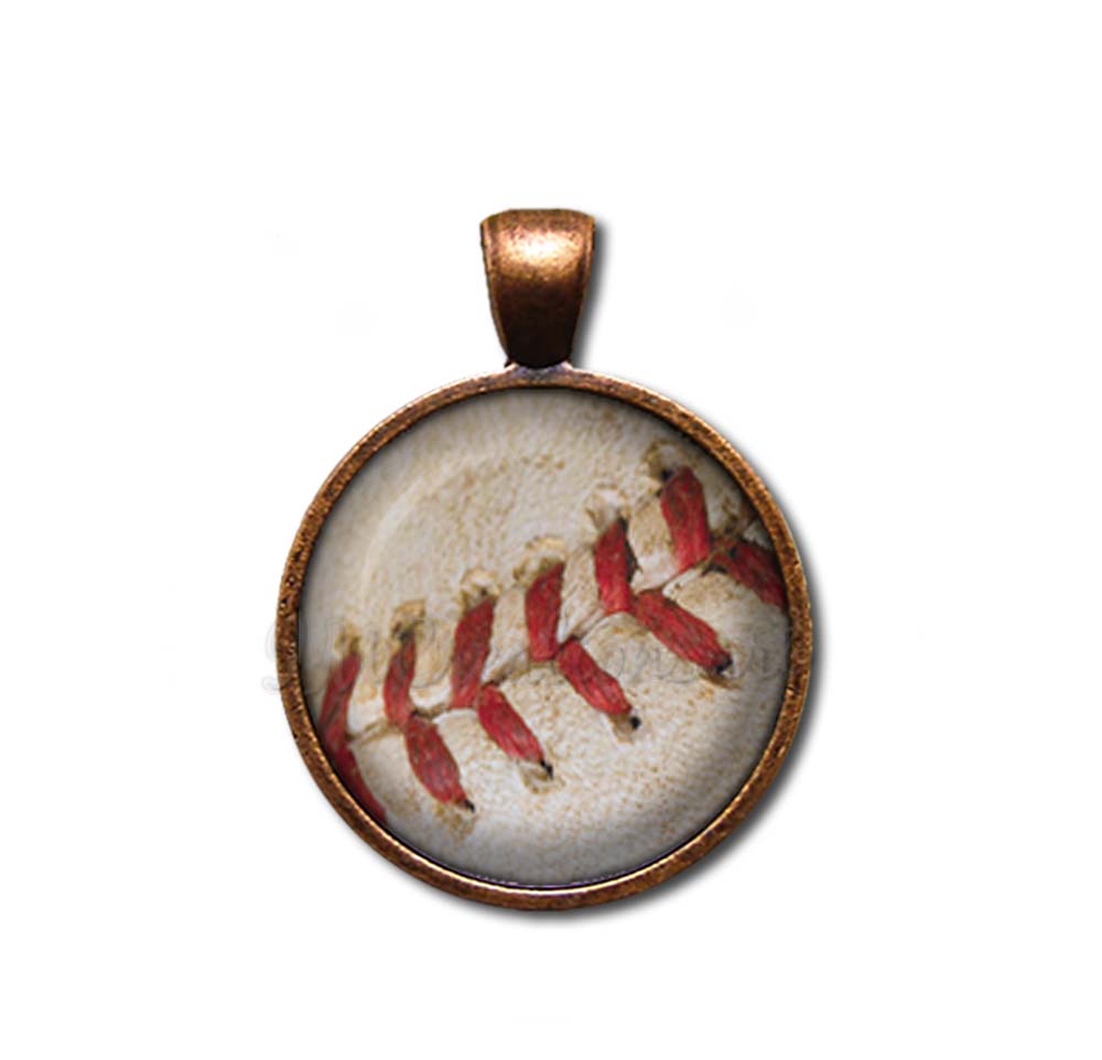 Discover our exquisite glass pendant necklace featuring a close-up of a baseball with vibrant red threads, making it a perfect gift for sports enthusiasts. Crafted with care, each pendant is available in four elegant metal finishes—Antique Bronze, Antique Copper, Bright Silver, and Gunmetal Black—and customizable with your choice of necklace length. These high-quality, stylish accessories are an affordable and distinctive gift suitable for any occasion, showcasing meticulous craftsmanship and sporty charm.