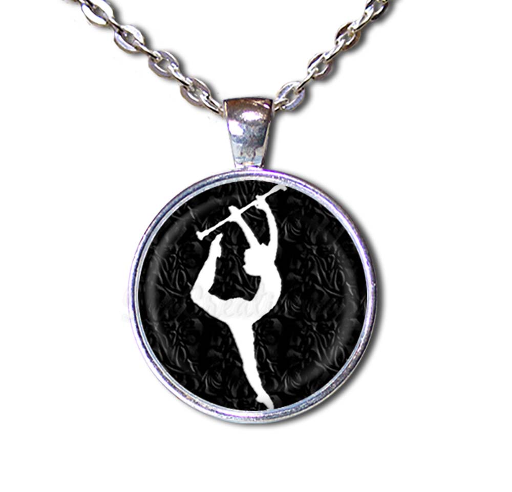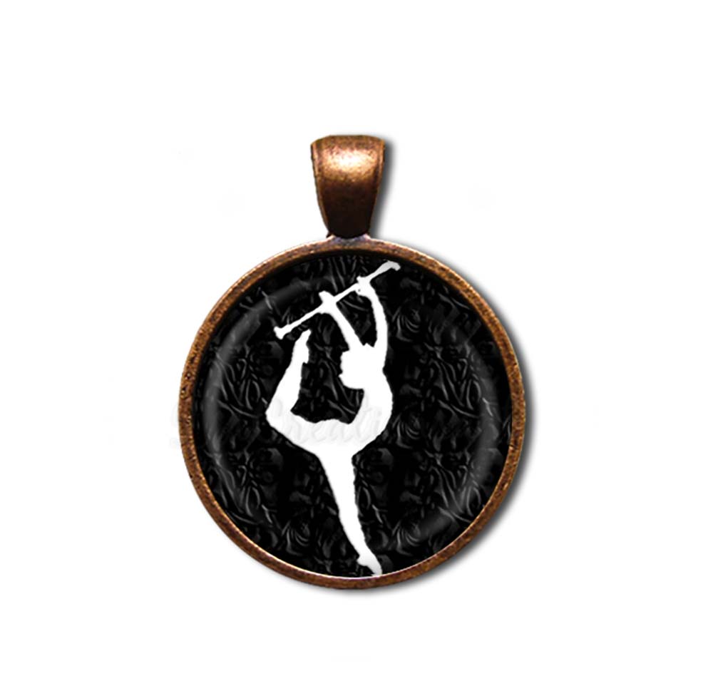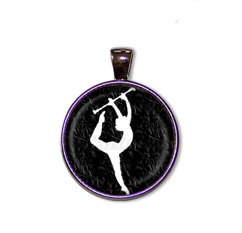 This stunning glass pendant necklace features a white silhouette baton twirler on a black background, making it a unique back-to-school gift to celebrate the sport of baton twirling. Perfect as jewelry or key rings, these charming and affordable pieces are ideal for any occasion, showcasing a vibrant printed image under a protective dome glass that creates a captivating 3D effect. Crafted with care for durability and quality, each item comes beautifully packaged in an elegant organza gift bag, making it a thoughtful and distinctive present.