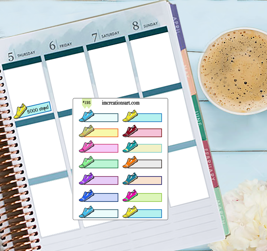 VERSATILE DESIGN: Set of colorful running sneaker stickers perfect for decorating planners, journals, and calendars to track workouts and fitness activities.