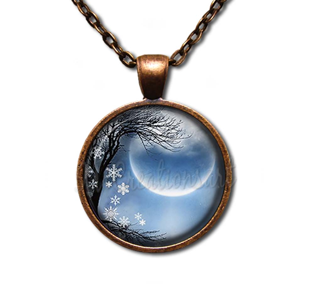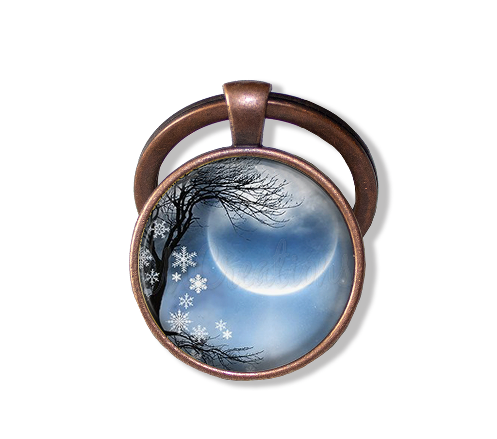 These glass pendant jewelry and key rings feature a seasonal winter solstice design. Ideal for nature lovers, these charming, affordable, and unique accessories are suitable for any celebration. Each piece showcases a dome glass that enhances a printed image, creating a captivating 3D effect, and is carefully crafted for durability and quality. Packaged in an elegant organza gift bag, they make a thoughtful and stylish present.
