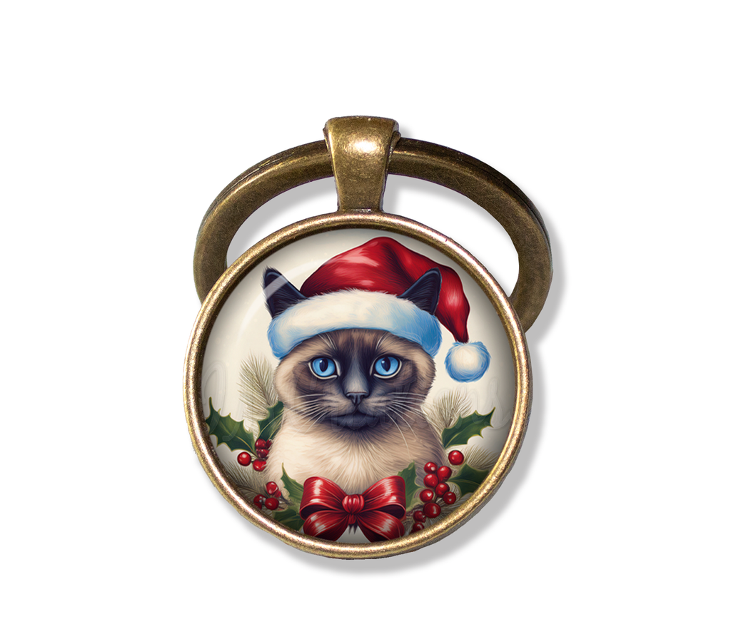 Christmas Siamese Cat with Santa Hat