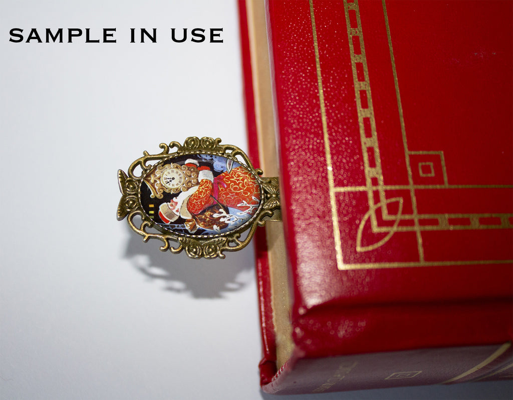 Glass cabochon alloy metal bookmarks make a lovely, affordable, and unique gift idea for any occasion. The oval glass pops up printed image beneath it giving it a 3D appearance. Well crafted to ensure a high quality product.