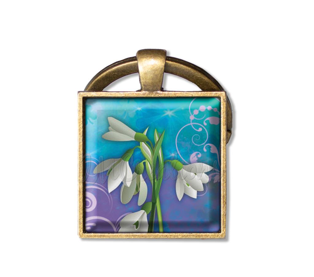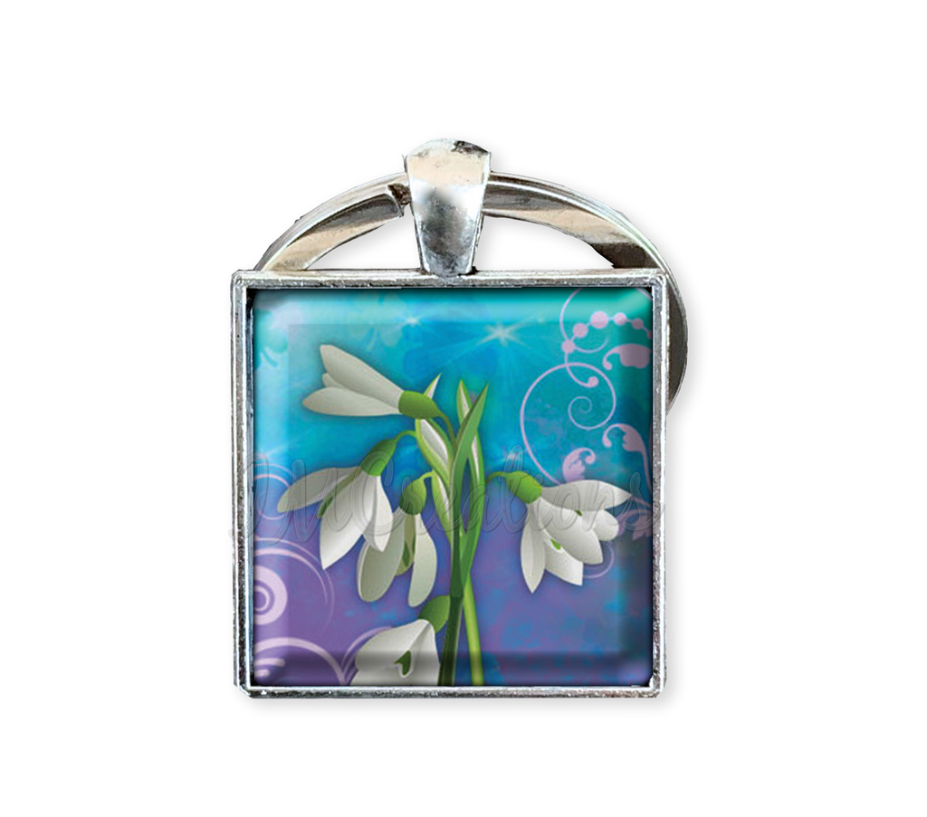 Square Glass Pendant Jewelry or Key Ring