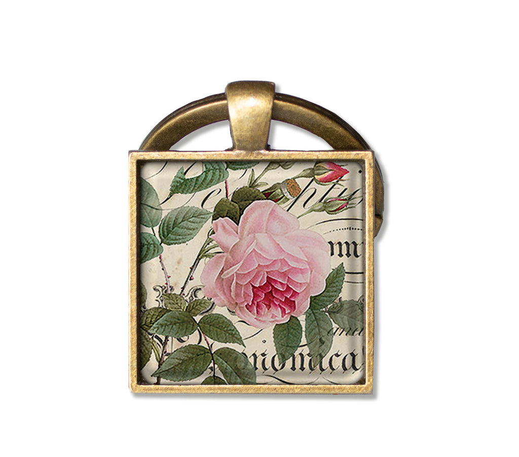 Square Glass Pendant Jewelry or Key Ring