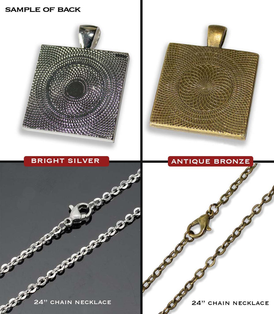 The 1" square glass pendant necklaces and key rings are a lovely, affordable, and a unique gift idea for any occasion. The glass pops up the printed image beneath it giving it a 3D appearance. Well crafted to ensure a high quality product, and will come with an organza gift bag.