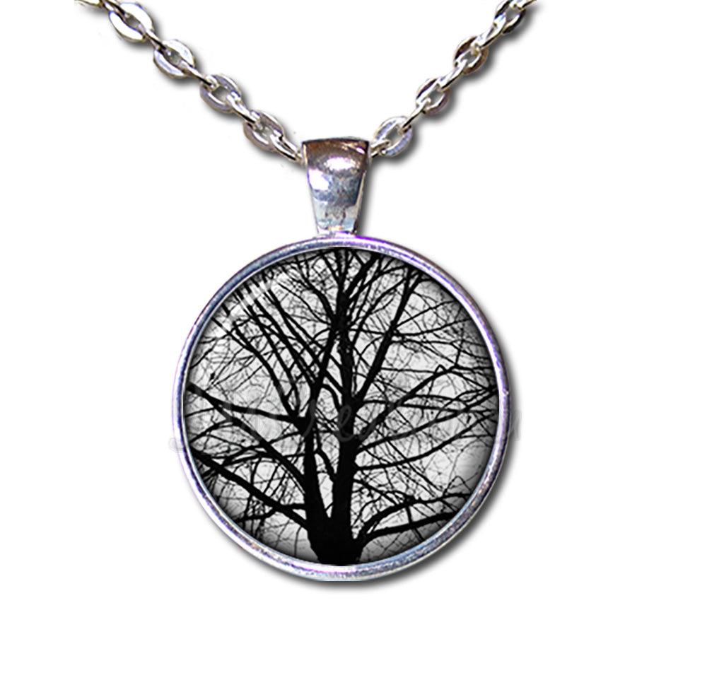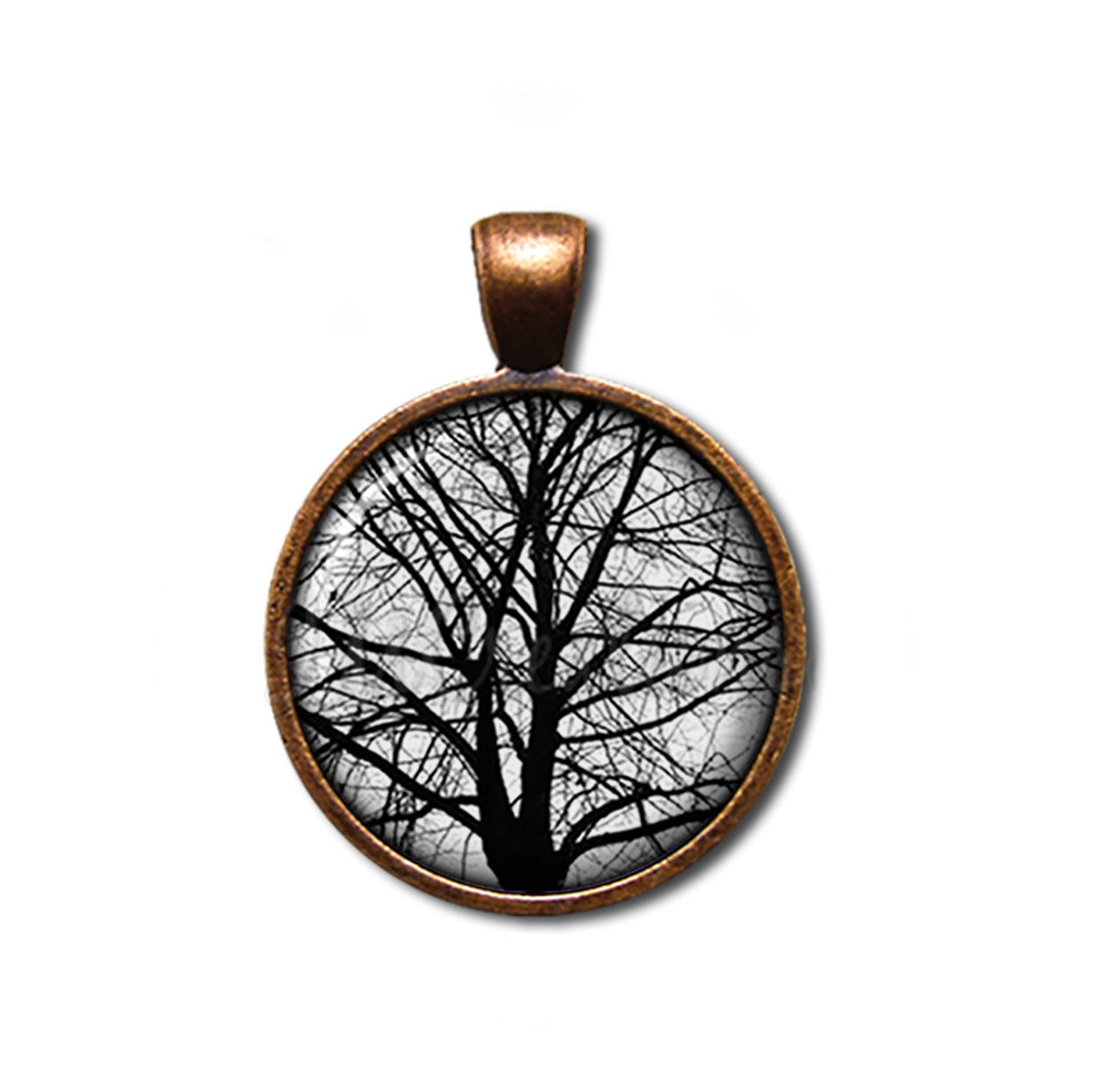 These glass pendant jewelry and key rings feature a seasonal winter tree design, making them a perfect gift for men who appreciate gothic style. Ideal for nature lovers, these charming, affordable, and unique accessories are suitable for any celebration. Each piece showcases a dome glass that enhances a printed image, creating a captivating 3D effect, and is carefully crafted for durability and quality. Packaged in an elegant organza gift bag, they make a thoughtful and stylish present.