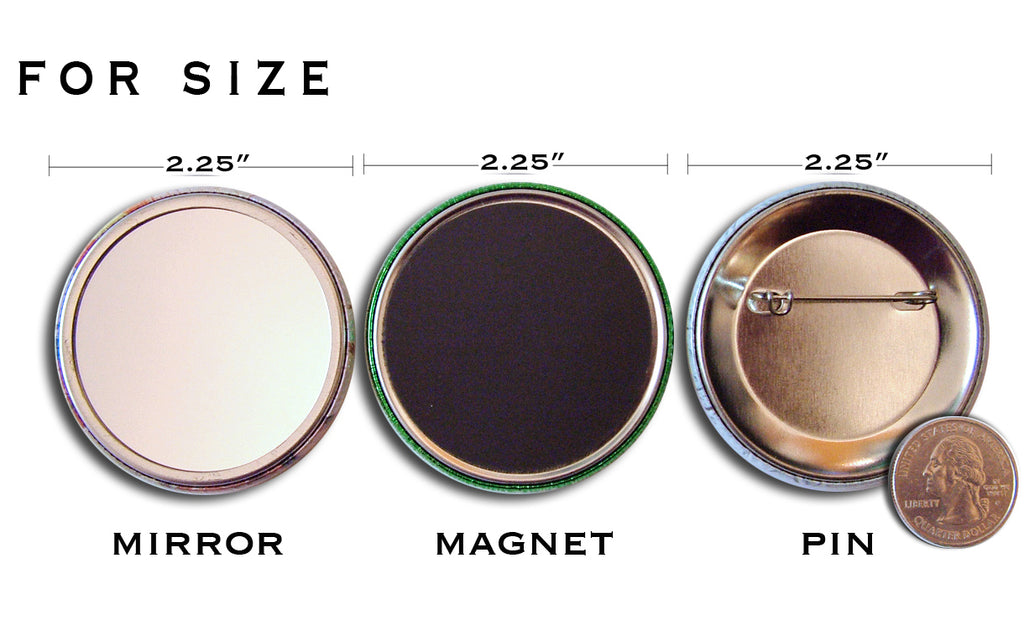 This design is available in all 3 different backings: Pocket Mirror, Magnet, Pinback