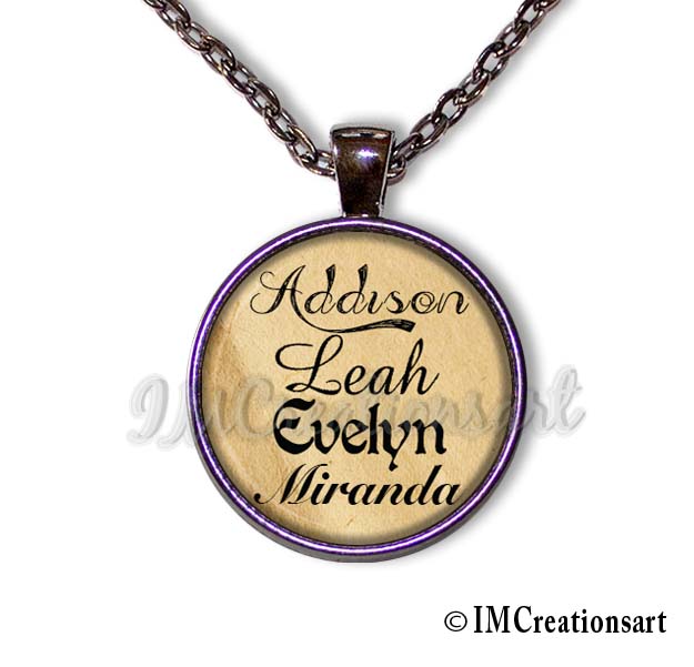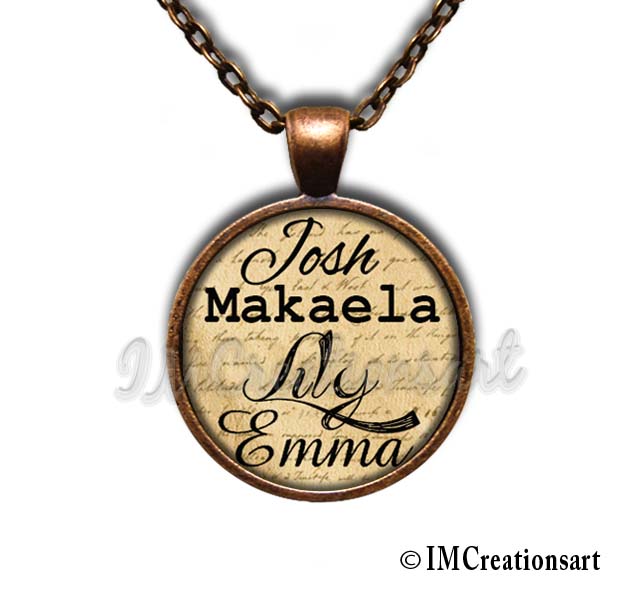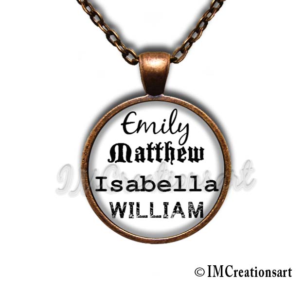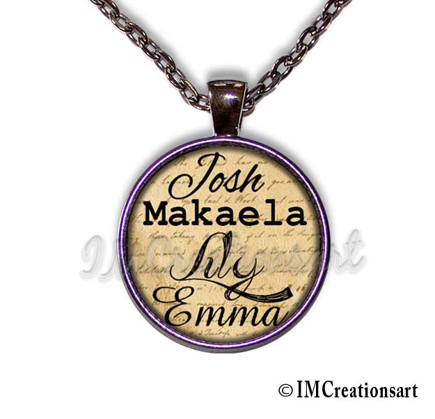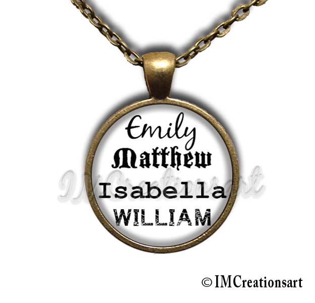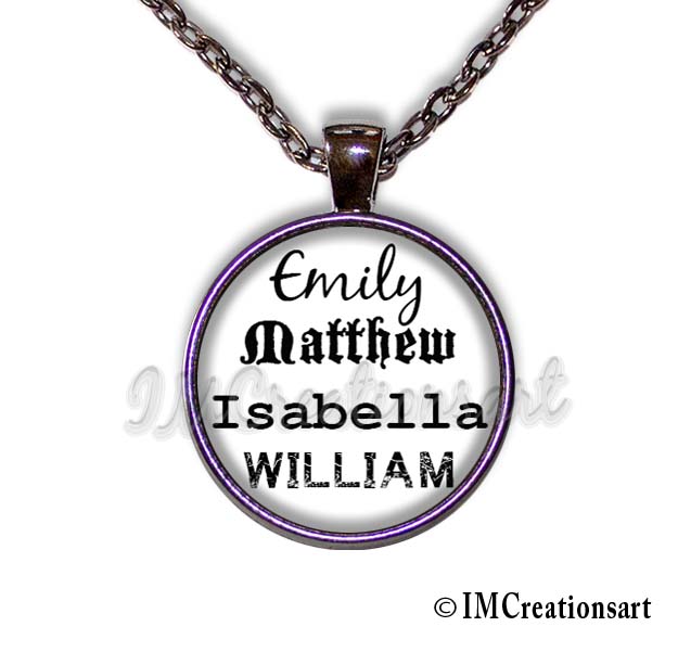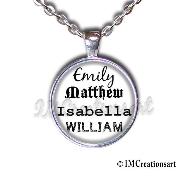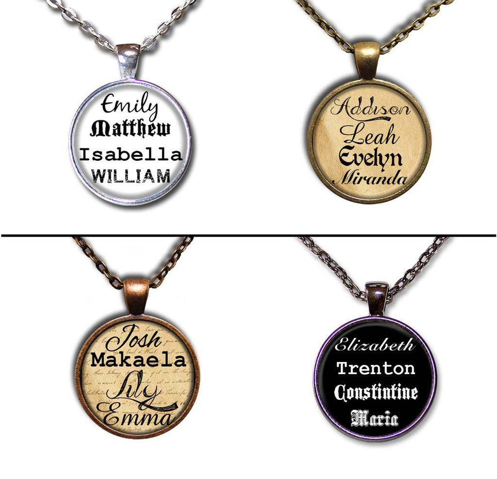 You may choose up to FOUR names on one pendant. And type in the number that is next to the font style that you like (all fonts are shown in photo 4)
