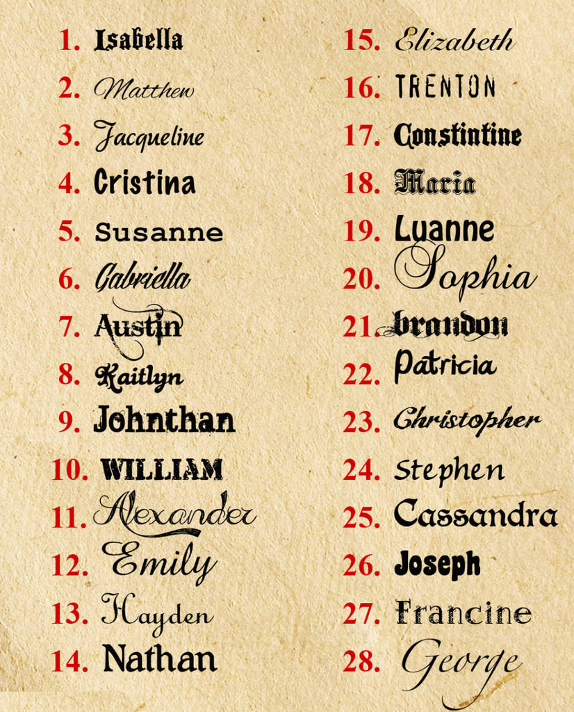 Please indicate the names and corresponding font you would like in "Add a note to your order"