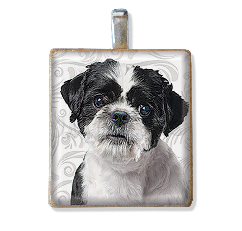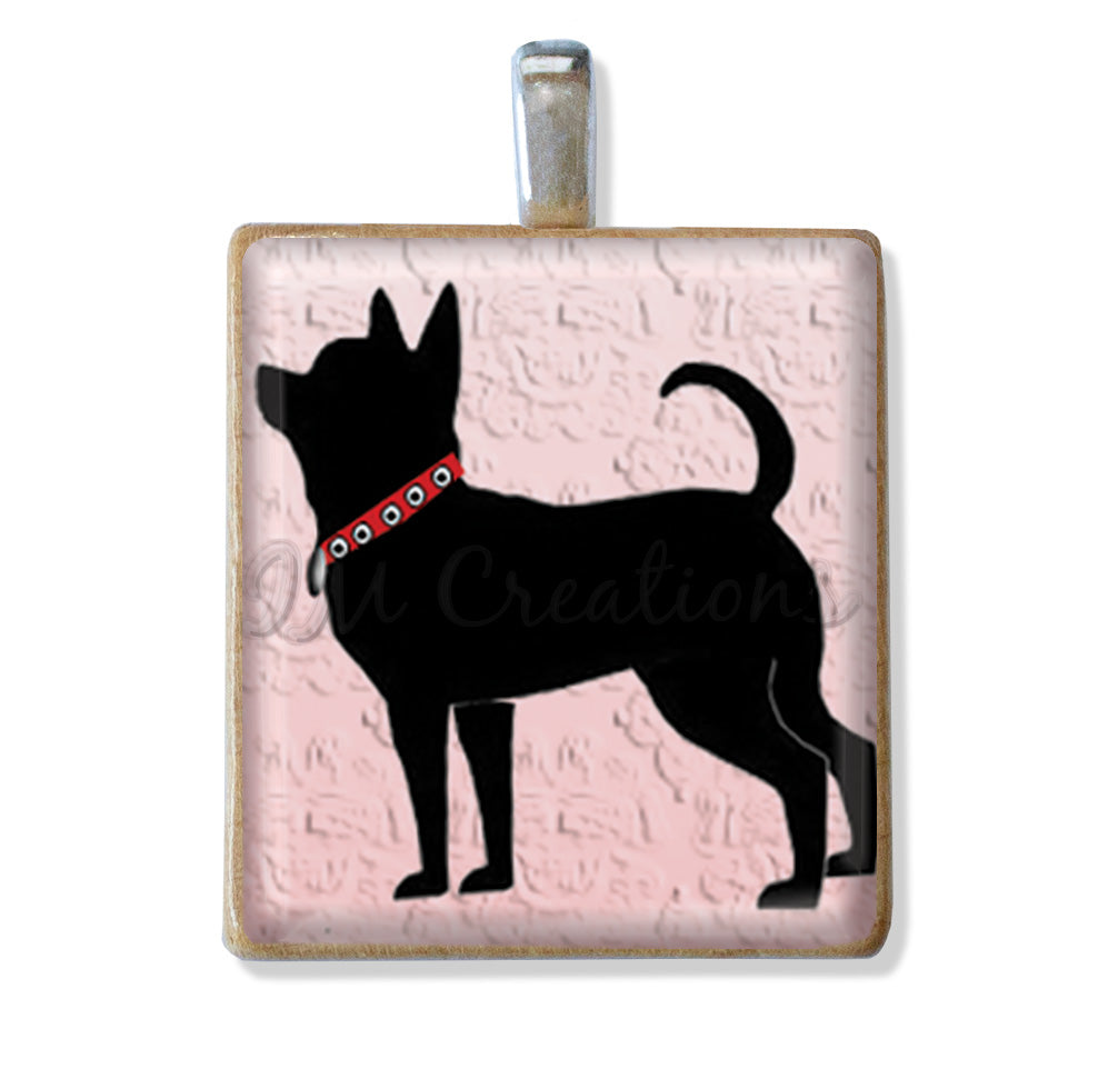- Graphic Image is decoupaged onto reclaimed scrabble tile.