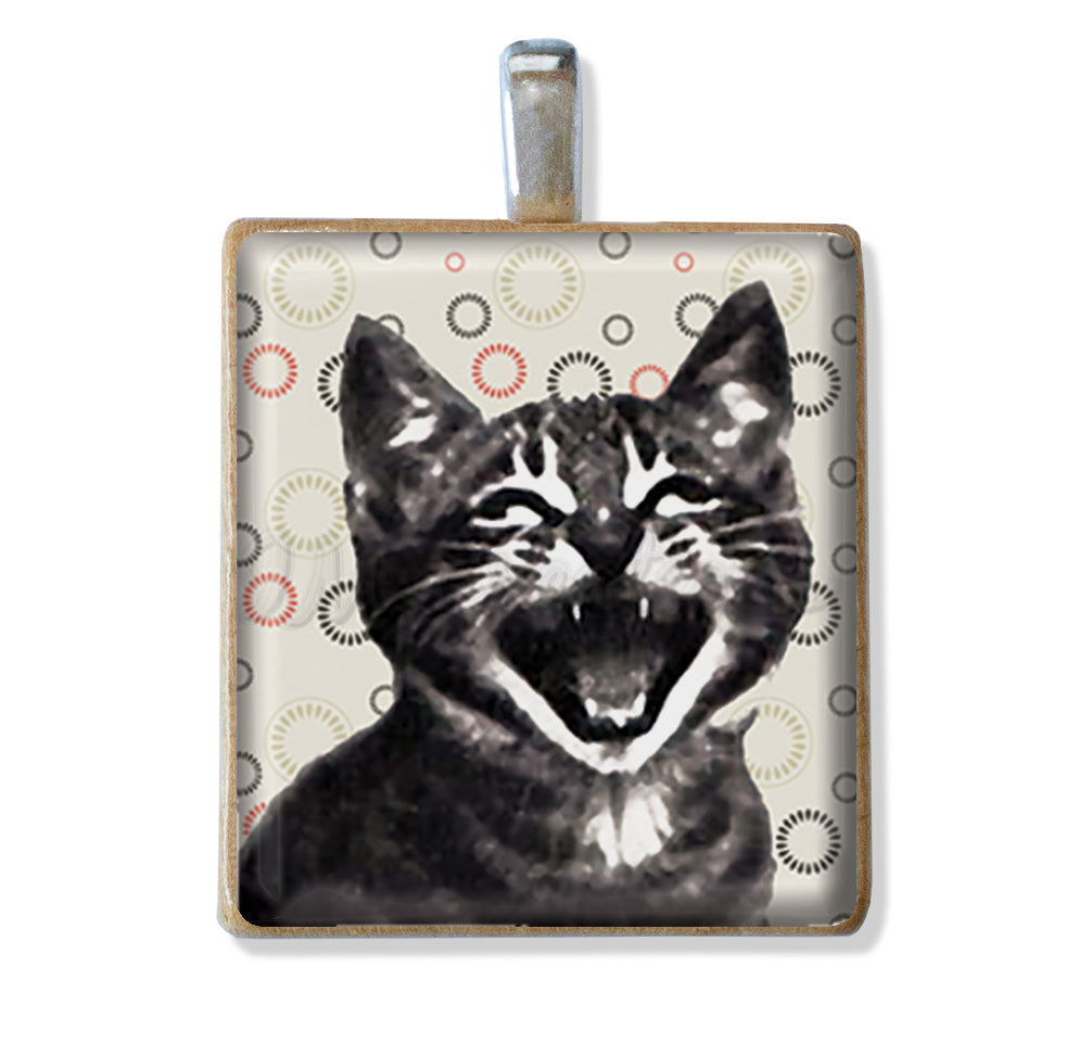 - Graphic Image is decoupaged onto reclaimed scrabble tile.