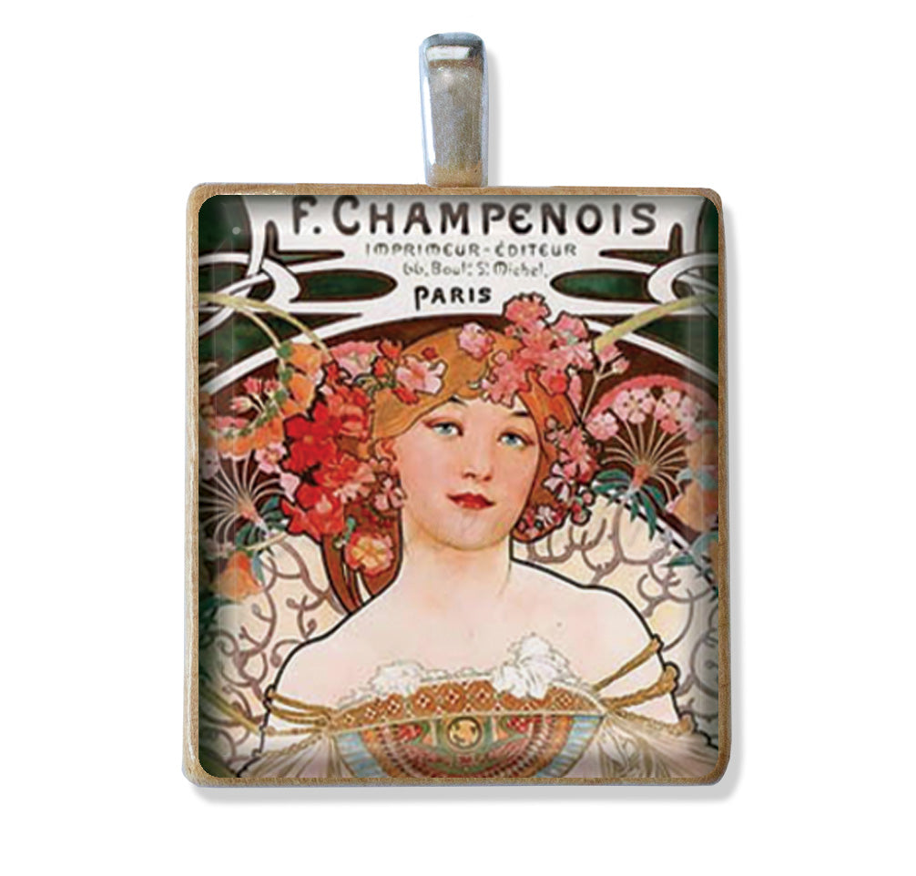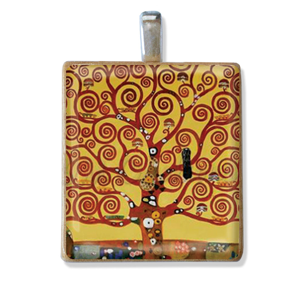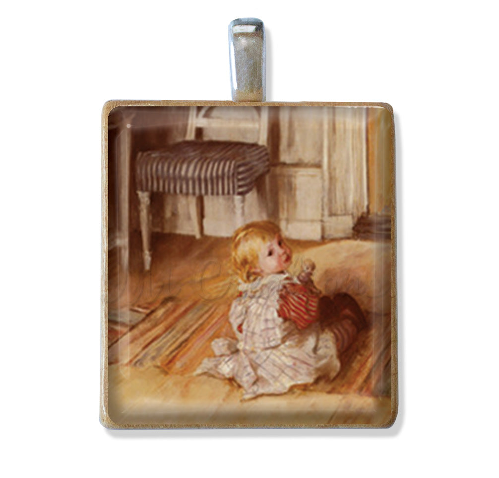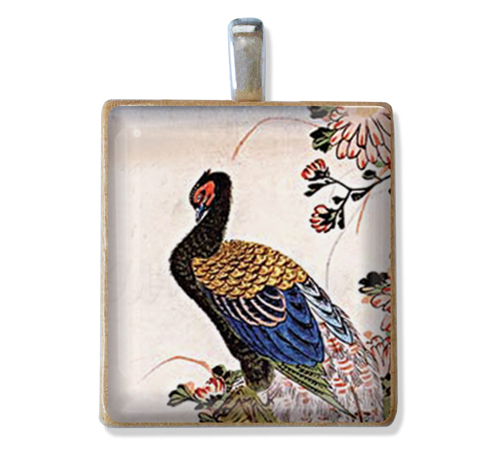 - Graphic Image is decoupaged onto reclaimed scrabble tile.