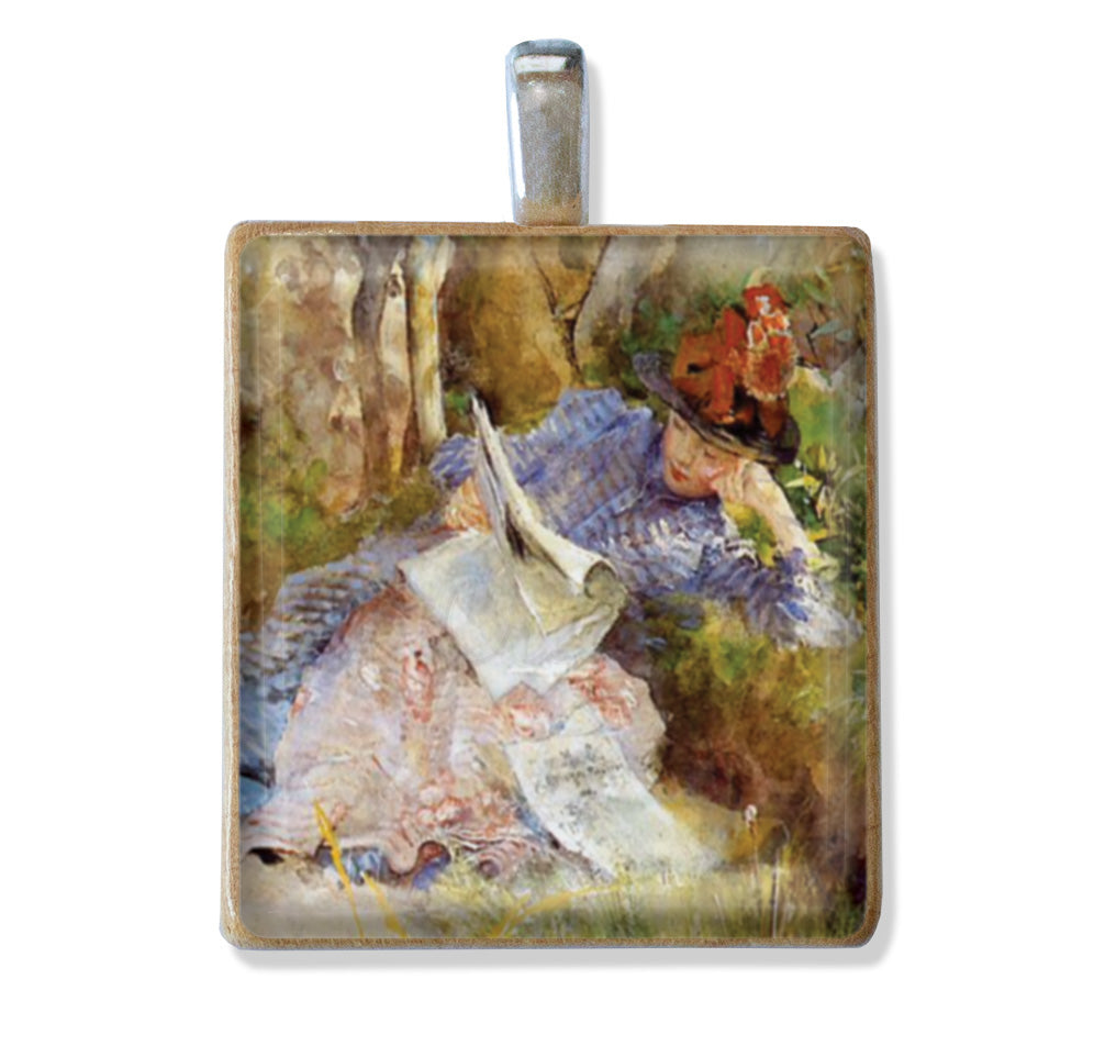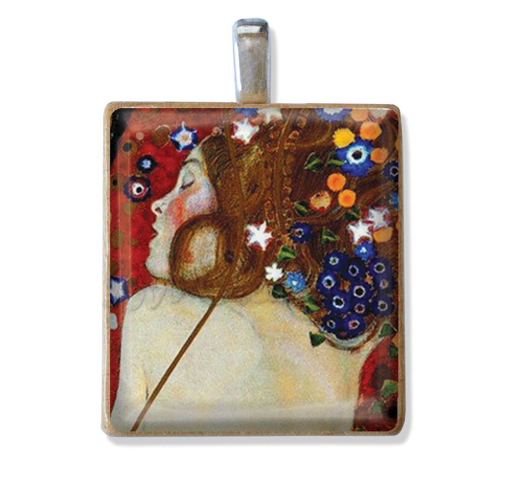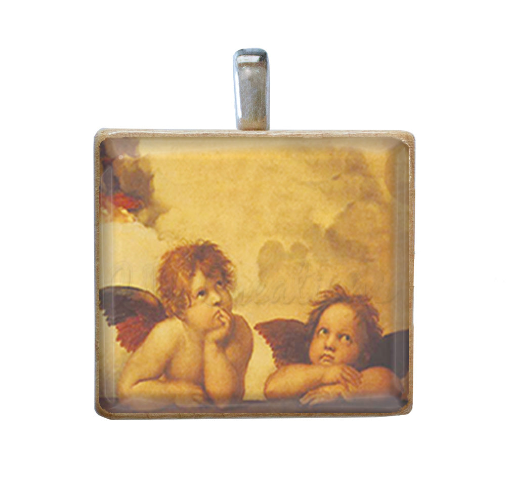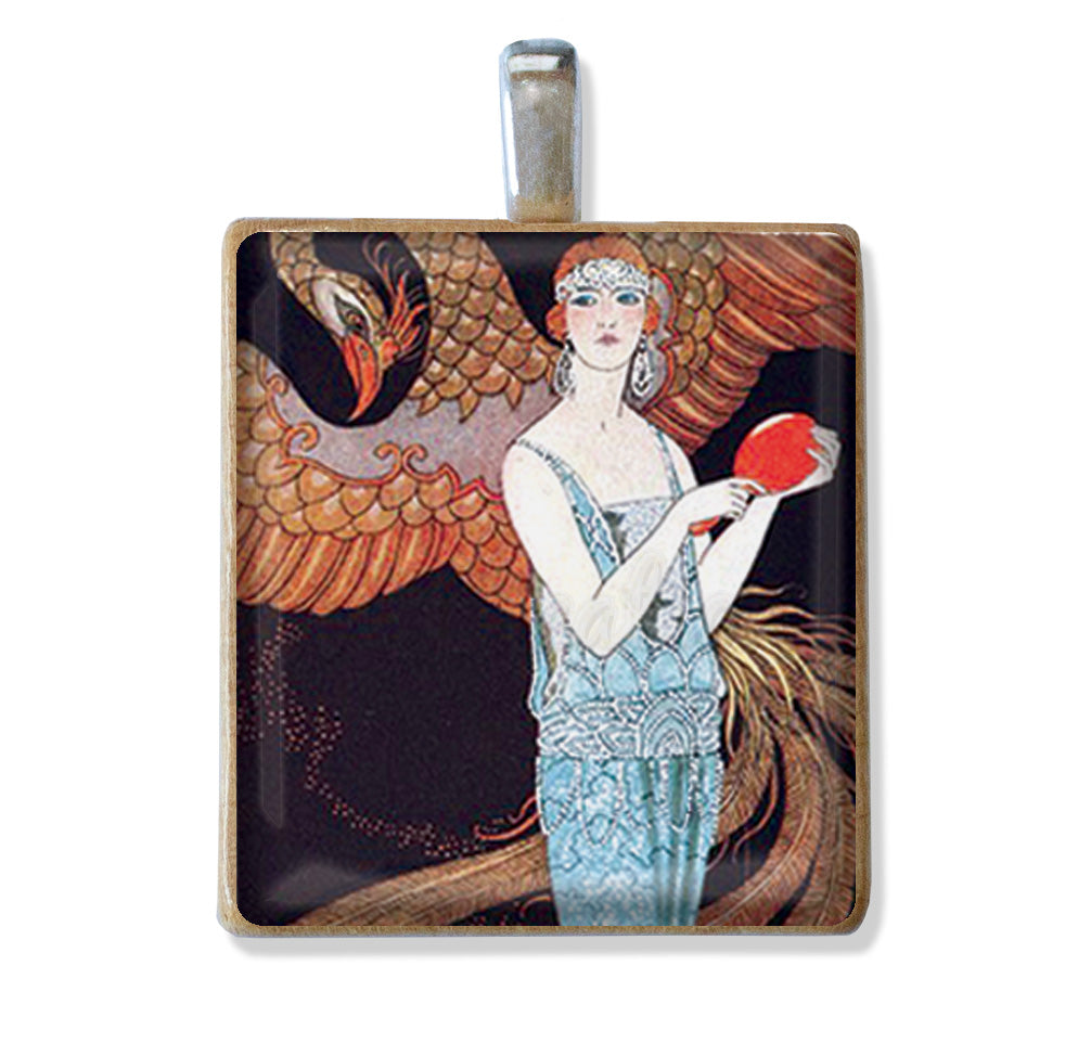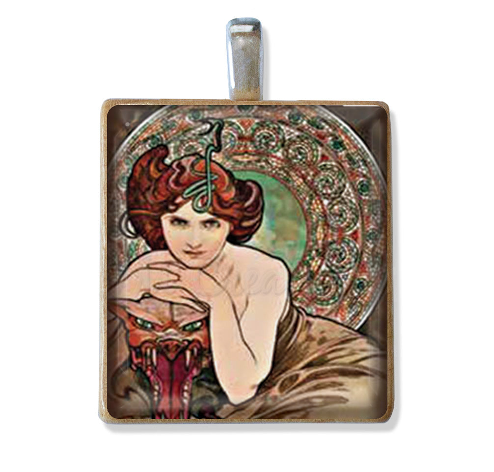 - Graphic Image is decoupaged onto reclaimed scrabble tile.