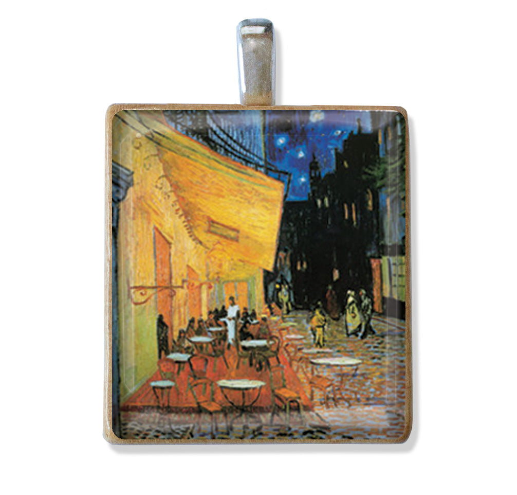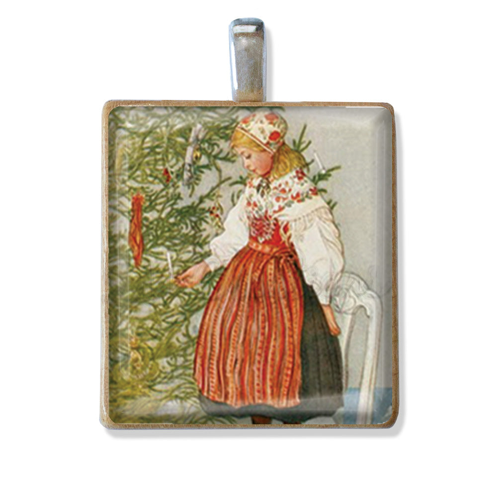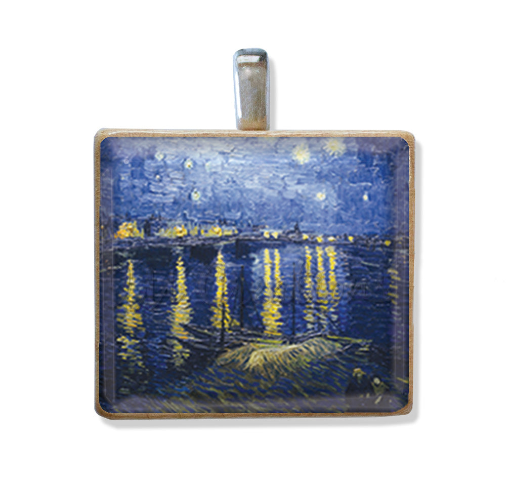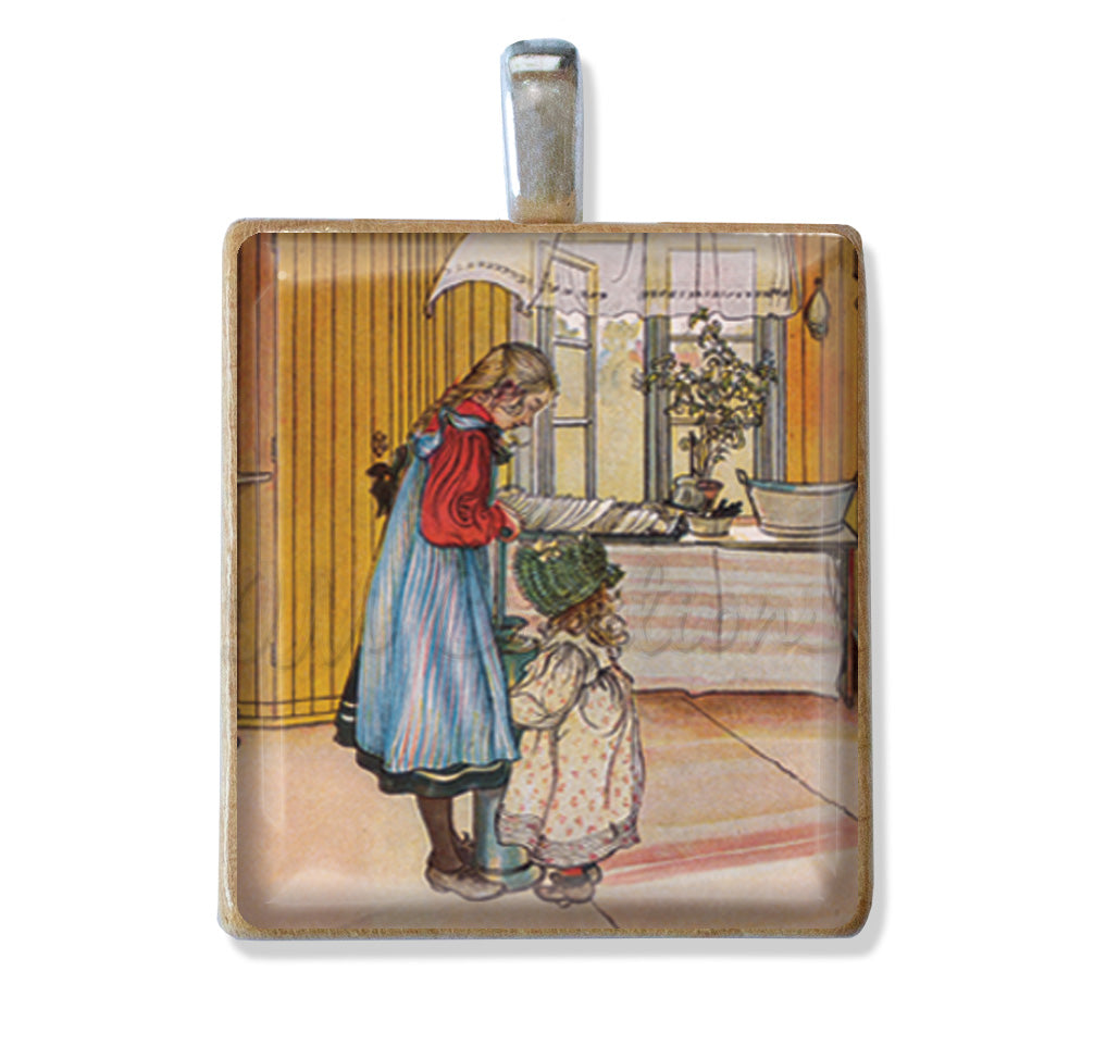 - Graphic Image is decoupaged onto reclaimed scrabble tile.