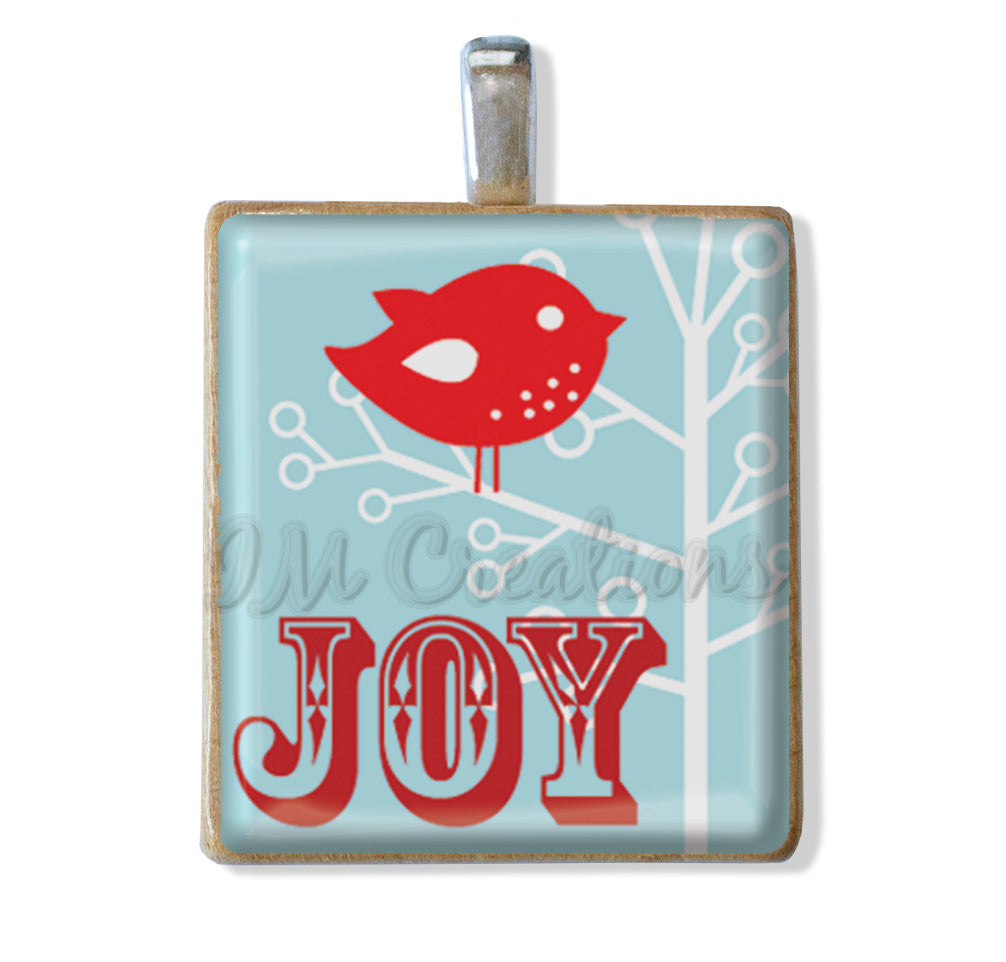 - Graphic Image is decoupaged onto reclaimed scrabble tile.