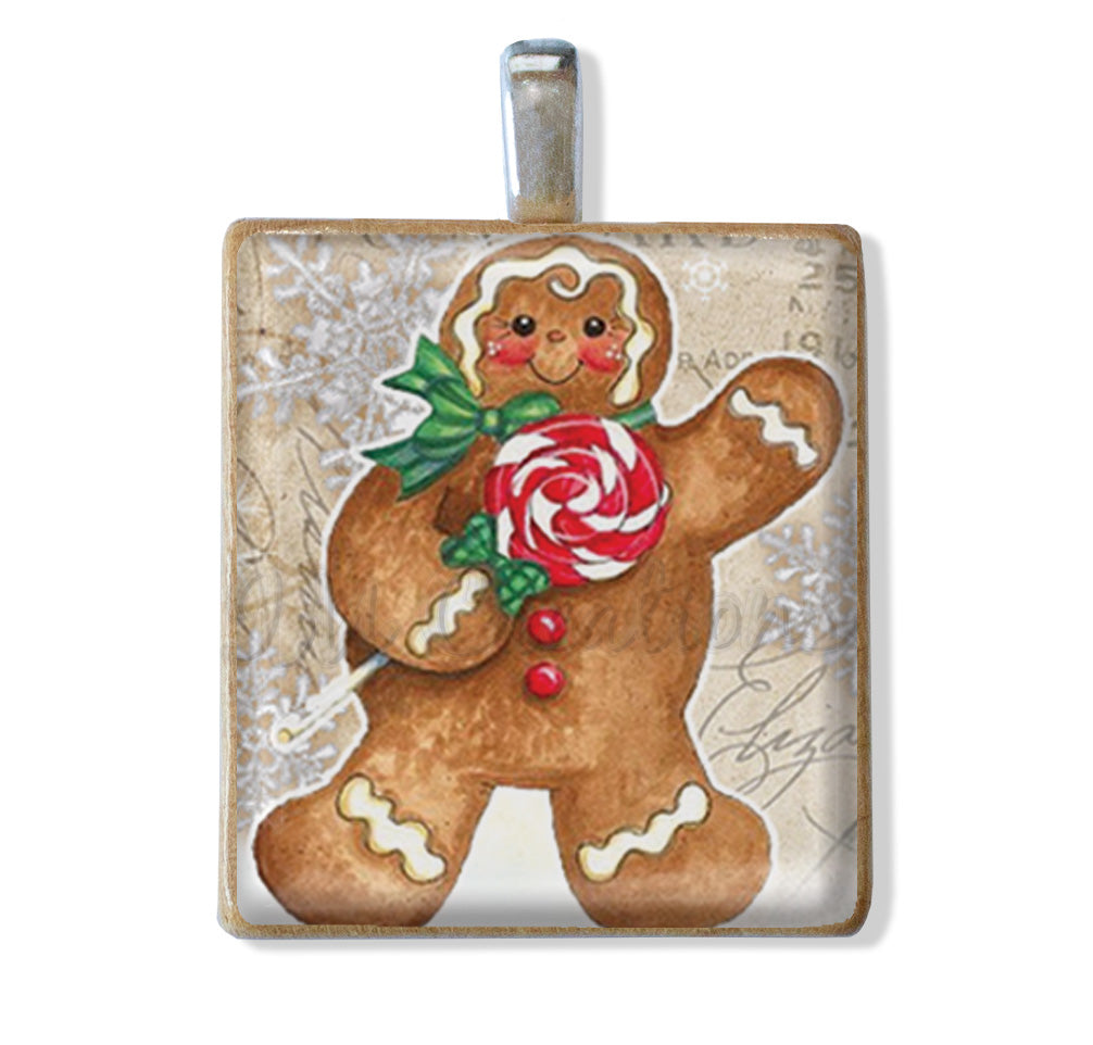 - Graphic Image is decoupaged onto reclaimed scrabble tile.