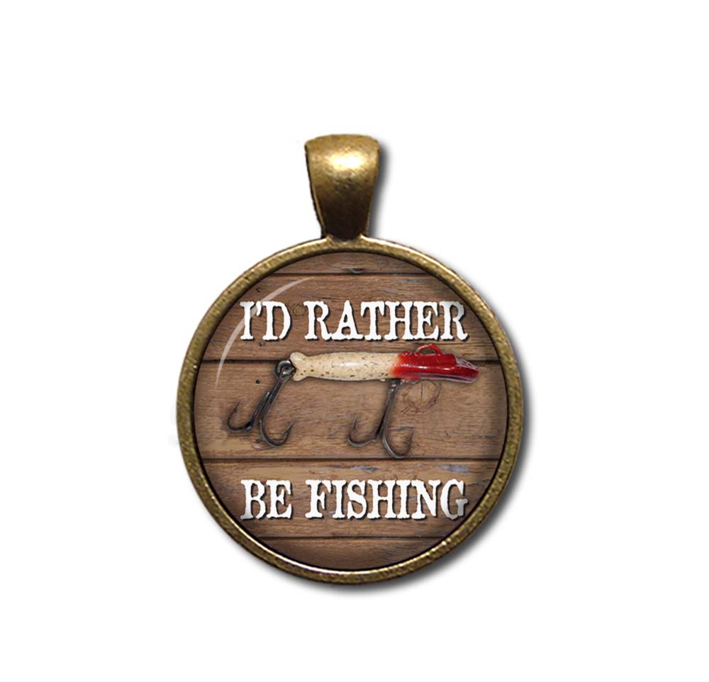 This stunning glass pendant necklace features a fishing sport-themed design with the phrase "I'd Rather Be Fishing," making it a perfect gift for the fisherman or your man in your life. Crafted with care, these charming, affordable jewelry pieces and key rings showcase vivid printed images under a domed glass, creating an eye-catching 3D effect. Designed for durability and quality, each item is beautifully packaged in an elegant organza gift bag, making it a thoughtful and memorable gift for any special occasion.