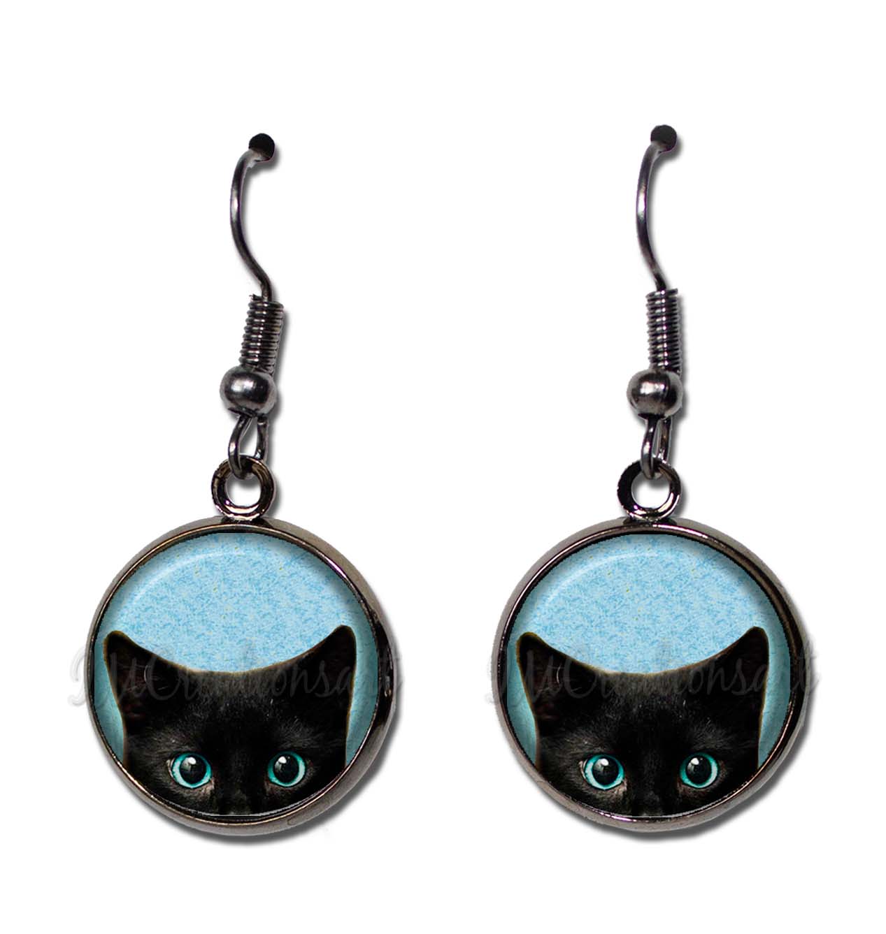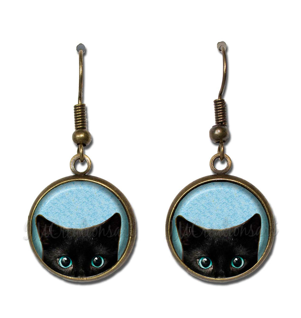 These delightful handmade French hook wire earrings showcase a cute black cat peeking playfully, making them ideal for feline enthusiasts. Suitable for birthdays, anniversaries, Mother’s Day, bridal favors, or holidays, they are available in various metal finishes such as Antique Bronze, Gunmetal Black, Rose Gold, and Silver Plated. Crafted from lightweight resin for both comfort and style, these charming earrings bring a whimsical touch to any jewelry collection.