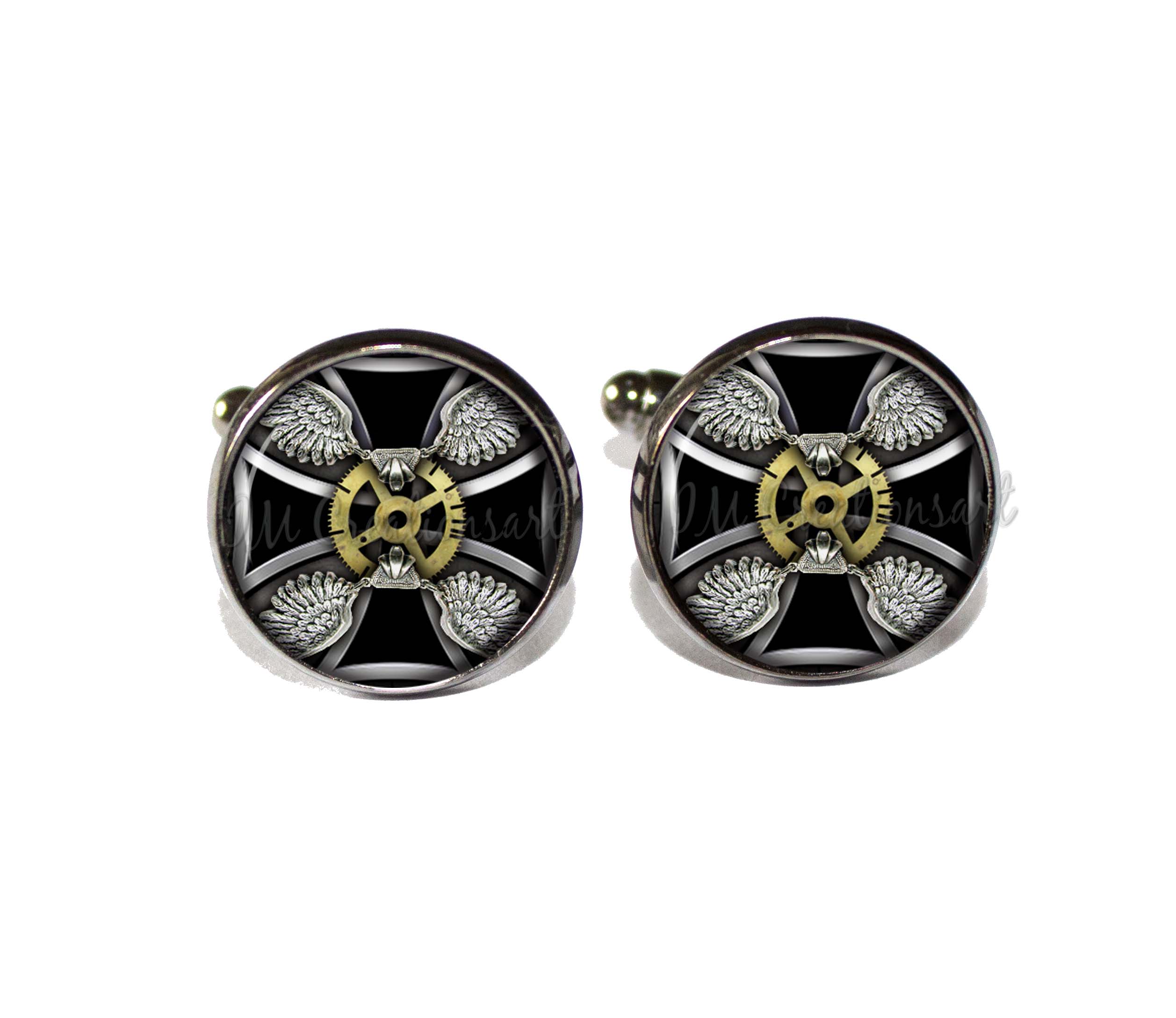 If you don't want to buy dad, grandfather, uncle, brother another sweater or tie, then these unique designed round glass and metal cuff links would make a perfect gift. They are a lovely, affordable, unique gift idea for any occasion. Perfect for personal gifts, party favors, wedding gifts, stocking stuffers, fundraisers, teacher gifts, holidays presents, or just buy for yourself!